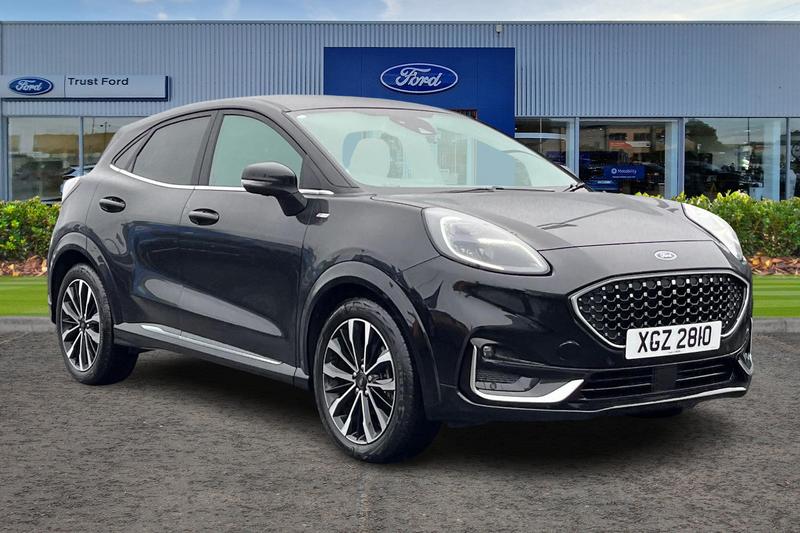 Insurance Group 16, Driver impairment monitor, Emergency call service, Ford easy fuel, Front and rear parking sensors, Full digital 12.3 instrument cluster, Lane keeping aid with lane departure warning, Power assist steering, Selectable drive modes(Normal, Eco, Sport, Slippery and Trail), Speed sign recognition, Automatic headlights with auto high beam, Automatic rain sensing wipers, Bodyside chrome styling, Fixed LED signature headlamps, Front fog lamps, Gloss black with chrome elements on front and rear bumpers, High chrome waistline, LED daytime running lights, LED rear lamps, Power foldable heated door mirrors with puddle lamps and puma logo protection, Privacy glass to side rear windows and tailgate glass, Quickclear heated windscreen, Rear side wing doors, Rear wiper, Third brake light, Vignale body styling kit with unique grille, 3 seat bench in 2nd row, Centre console with armrest and stowage, Ford megabox extended bootspace, Front and rear floor mats, Front and rear head restraints, Manual 4 way driver seat adjust with lumbar adjustment and massage function, Manual 4 way passenger seat adjust with lumbar adjustment and massage function, Premium sensico leather upholstery with metal grey stitching, Premium sensico perforated flat bottomed steering with metal grey stitching, Premium sensico wrapped instrument cluster, Single front passenger seat, Wireless charging pad with electronic air temperature control (EATC), 3 rear seatbelts, Child safety lock, Electronic stability control (ESC)