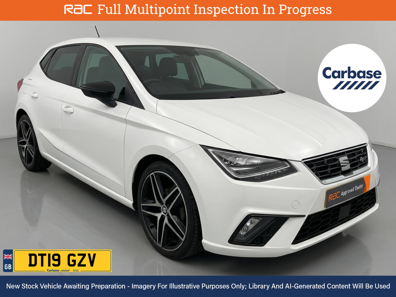 RAC MultiPoint Inspection at 61k Miles And Service History Last At 55k Explore The Alluring And Distinctive Sharp Lines Of The Ibiza, Visit Us InStore, Immerse Yourself In Its Features, And Take It For A Test Drive Thats Hard To Resist. Fitted With Extras Including, Rear Radar Type Parking Sensors And Finished In White Paint Standout Key Features Include Gps Satellite Navigation System, Boasting Intuitive Sat Nav Functionality For Seamless Journeys. As You Step Inside You Will Find A Variety Of Technologies, Including Apple CarPlay, Android Auto, Rear Radar Type Parking Sensors, Cruise Control, Rain Sensing Windscreen Wipers. Keep Everyone Onboard Entertained Thanks To Features Such As Mp3 iPhone iPod USB & Aux Music Ports, Voice Control For Media Functions, Bluetooth Wireless SmartPhone Connectivity, DAB Digital Radio For A Myriad Of Stations To Suit Your Mood. Relax In The Ultimate Comfort Thanks To DualZone Climate Control, Air Conditioning, Electrically Foldable Door Mirrors, Anti Dazzle Rear View Mirror, Isofix, Front Electric Windows, Rear Privacy Glass, Leather Covered Multifunction Steering Wheel. On The Exterior Youll Be Sure To Notice The 18 Inch Alloy Wheels, Sports Suspension. Also Fitted With Front Fog Lights, Engine Start/Stop Fuel Saving Technology, Electric Hill Holder, Tyre Pressure Monitoring System., Date Of First Registration June 2019. Drive Into A Low Emissions Zone With This Euro 6, ULEZ & CAZ Compliant Car Were an RAC Approved Dealer Whe...