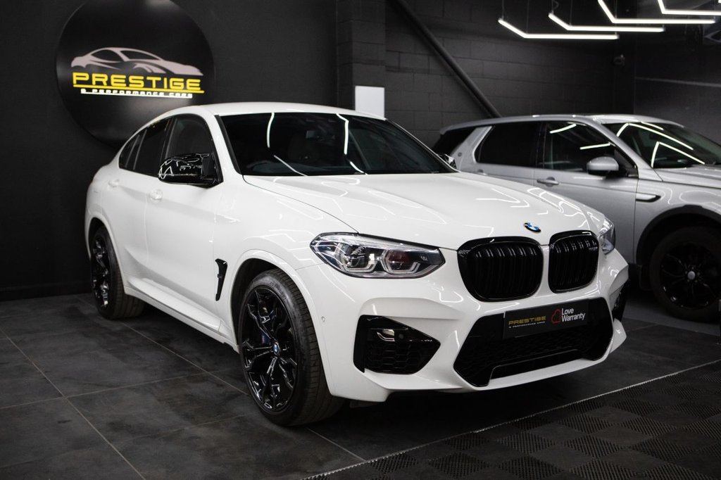 **BMW X4M Competition Alpine White High Specification** A superb example of the **BMW X4M Competition**, finished in striking **Alpine White** and complemented by a luxurious **Adelaide Grey Merino Leather interior**. This high?performance SUV delivers exceptional power, precision and everyday usability, paired with an outstanding specification. **Key Features** Alpine White exterior Adelaide Grey Merino Leather upholstery Electrically adjustable heated front seats with driver memory and lumbar support Heated rear seats Heated steering wheel Harman/Kardon premium sound system Satellite navigation Reversing camera Apple CarPlay Wireless device charging Comfort Access (keyless entry) Privacy glass Black Pack Gloss black alloy wheels M Competition performance enhancements And much more **Condition & Presentation** This X4M Competition presents beautifully throughout, reflecting careful ownership and meticulous upkeep. The interior is clean, modern and finished with high?quality materials, while the exterior offers a bold, athletic stance. The vehicle drives exactly as expected from BMWs M division, delivering sharp handling, impressive power and refined comfort. **Why Choose This Vehicle** The X4M Competition combines the practicality of an SUV with the performance of a true M car. With its rare colour combination, extensive specification and premium interior, this example stands out as an exceptional choice for anyone seeking performance, luxury and everyday versatility. Prestige and Performance Cars Wakefield Ltd, owned by an experienced dealer with a successful previous dealership which was a 5star rated car sales company, specialises in highend, luxury, and performance vehicles. Renowned for exceptional customer service and a diverse inventory, the dealership offers personalised buying experiences. Visit us at www.prestigeandperformancecarswakefield.co.uk .PRIVACY GLASS, HEATED STEERING WHEEL, ELECTRIC SEATS WITH DRIVER MEMORY, HEATED FRONT & REAR SEATS, COMPETITION WHEELS (GLOSS BLACK), 12V Power Socket in Front Centre Console, 21in Alloy Wheels M Light VSpoke Style 765 M Bicolour with Mixed Tyres, Acoustic Glazing, Active Guard, Adaptive M Suspension, Air Conditioning Automatic, Airbags, Alarm System Thatcham 1 with Remote Control and Engine Immobiliser, Ambient Lighting, Armrest Front with Storage Compartment, Armrest Rear Centre with Two Cupholders, Attentiveness Assistant, BMW ConnectedDrive Online Services, BMW Emergency Call, BMW Icon Adaptive LED Headlights, BMW Mobility System, BMW Professional Radio with Single CD Player with MP3 Playback Compatibility, BMW TeleServices, Battery Safety Cut Off, Bluetooth HandsFree Facility with USB Audio Interface and Audio Streaming, Bottle Holders Integrated into Door Trim Storage Compartments Front up to 1 litre Rear Up to 750ml, Brake Pad Wear Indicator Front and Rear, Bumper System Front and Rear Replaceable Deformation Elements for Impacts Up to 9mph, Central Locking Switch for All Doors Fuel Filler Cap Luggage Compartment, Check Control Warning System for Monitoring of Lights and DoorLuggage Compartment Open Warning, Child Proof Locking System Rear Doors, Child Seat ISOFIX Attachment Rear, Condition Based Service, Control Display 10.25in Colour Display Screen, Crash Sensor, Cruise Control with Brake and Speed Limiting Function, Cup Holders Front Two, DAB Digital Radio, DSC Dynamic Stability Control Plus, Digital Cockpit, Direction Indicator Side Repeaters Integrated in Exterior Mirrors, Door Sill Finishers Front HighGloss Black Front with M Competition Designation, Driving Assistant, Dynamic Brake Lights, Dynamic Safety, EPS Electric Power Steering, Electric Front Seat Adjustment with Driver Memory, Electric Windows Front and Rear with OpenClose Fingertip Control AntiTrap Facility and Comfort Closing Function, Electro Mechanical Parking Brake, Exterior Air Inlets Mirror Caps and Air Breather in High Gloss Black, Exterior B Pillar Black, Exterior Mirrors Electrically Folding with Anti Dazzle, Exterior Parts in Body Colour, Exterior Trim HighGloss Shadowline, First Aid Kit and Warning Triangle, Floor Mats Velour, Front M Sport Seats, Grab Handles Integrated in Roof Lining x4, HeadUp Display, Headlining Anthracite, Heat Protection Glazing with Green Tint, High Level Third Brake Ligh
