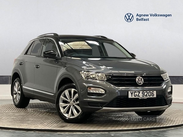 Insurance Group 11, 1 Previous Owner, Agnew Volkswagen Belfast are delighted to offer this stunning 2019 Volkswagen TRoc Design 1.0 TSI 115PS 6speed Manual 5 Door in Indium Grey with 17" 'Mayfield' Alloy Wheels Composition media system with AppConnect for Apple CarPlay and Android Auto Rear Privacy Glass Styling Pack with White Ambient Lighting and Sportstyled bodycoloured bumpers Light and Vision Pack with Autodimming interior rearview mirror Adaptive Cruise Control and Front Assist Lane Assist