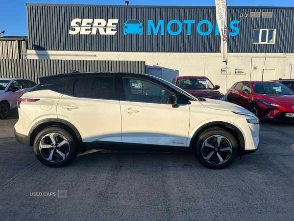 BelfastThe Nissan QASHQAI 1.5 EPower NConnecta provides a versatile and comfortable choice for a wide range of motorists. With an automatic transmission and a recorded mileage of 28,953 miles, this model is designed to deliver a refined and userfriendly driving experience. Features such as electric auto folding door mirrors, dual zone automatic climate control with pollen filter, and a hard trunk cover contribute to both convenience and everyday practicality.Powered by a 190 bhp hybrid system, this vehicle offers responsive performance with a 060 mph time of 7.9 seconds and a top speed of 105 mph. The inclusion of drive modessport, normal, and ecoallows for a tailored driving experience, while the ePedal step technology enhances control during urban and stopstart driving conditions. Intelligent cruise control and speed limiter features further contribute to a relaxed and assured journey.Externally, the QASHQAI is presented in white with thoughtful styling details, including body coloured door handles, body colour mirror caps, a rear roof spoiler, and chrome side window finishers. LED headlights, daytime running lights, and rear lights provide both style and visibility, while privacy glass and a shark fin antenna add a contemporary touch. The partbody coloured bumpers and rear bumper with graphite insert complement the overall appearance.The specification includes a range of advanced technologies, such as Nissan connect 12.3 inch touchscreen infotainment with navigation, Google maps services, wireless Apple CarPlay, and wired Android Auto. Safety and driver assistance are prioritised with the intelligent around view monitor, blind spot warning, lane departure prevention, intelligent rear automatic braking, and a comprehensive airbag system. Further amenities include a full digital 12.3'' TFT digital combimeter, front and rear parking sensors, ambient lighting, and the intelligent key system for added security and convenience