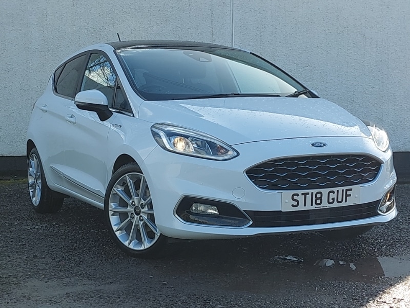 Insurance Group 13, Rear view camera, Bluetooth system, Bang and Olufsen premium sound with 10 speakers and Ford SYNC 3 Navigation, Rear parking sensor, Panoramic roof, Comfort Pack Fiesta, Trip computer, DAB with voice control, Steering wheel mounted controls, Traffic sign recognition, Lane keep assist, USB connection, Automatic headlights, Body colour electric adjustable heated door mirrors, Electric front windows/one touch facility, SYNC Emergency Assistance, Electric rear windows, LED daytime running lights, Cornering front fog lights, Privacy glass, Quickclear heated windscreen, Rear wiper, Tinted glass, 12V Accessory socket in centre console, Air conditioning + Electric Auto Temperature Control (EATC), Illuminated cup holders, Leather upholstery, Rake/reach adjustable steering wheel, ABS+EBA, ESP + traction control, Hill start assist, Tyre pressure monitoring system, Immobiliser, Key free system with 'Ford Power' start button, MyKey system, Remote central locking, Thatcham Cat.1 alarm