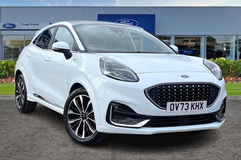 Insurance Group 12, Driver impairment monitor, Emergency call service, Ford easy fuel, Front and rear parking sensors, Full digital 12.3 instrument cluster, Lane keeping aid with lane departure warning, Power assist steering, Selectable drive modes(Normal, Eco, Sport, Slippery and Trail), Speed sign recognition, Automatic headlights with auto high beam, Automatic rain sensing wipers, Bodyside chrome styling, Fixed LED signature headlamps, Front fog lamps, Gloss black with chrome elements on front and rear bumpers, High chrome waistline, LED daytime running lights, LED rear lamps, Power foldable heated door mirrors with puddle lamps and puma logo protection, Privacy glass to side rear windows and tailgate glass, Quickclear heated windscreen, Rear side wing doors, Rear wiper, Third brake light, Vignale body styling kit with unique grille, 3 seat bench in 2nd row, Centre console with armrest and stowage, Ford megabox extended bootspace, Front and rear floor mats, Front and rear head restraints, Manual 4 way driver seat adjust with lumbar adjustment and massage function, Manual 4 way passenger seat adjust with lumbar adjustment and massage function, Premium sensico leather upholstery with metal grey stitching, Premium sensico perforated flat bottomed steering with metal grey stitching, Premium sensico wrapped instrument cluster, Single front passenger seat, Wireless charging pad with electronic air temperature control (EATC), 3 rear seatbelts, Child safety lock, Electronic stability control (ESC)