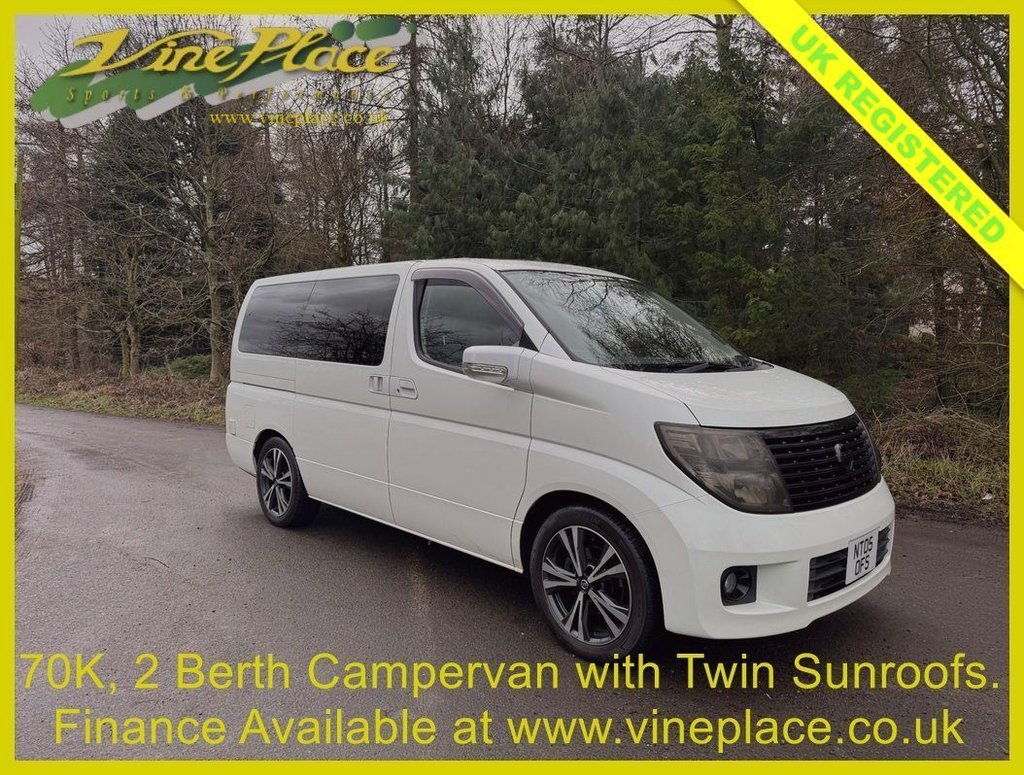 1 Previous Owner, Nissan Elgrand 2.5 "VP Adventurer" Luxury Camper Low 70,000 Miles Bespoke InHouse Conversion The Ultimate Japanese Escape Pod Forget the cramped, utilitarian vans of the past. The VP Adventurer is a highspecification luxury camper built upon the legendary Nissan Elgrand E51 chassis. Combining the carlike driving dynamics of a premium Japanese MPV with a professional, handcrafted living space, this 2005 2.5L V6 model offers a level of refinement rarely seen even in much more expensive motorhomes. From the whisperquiet V6 engine to the thermostatically controlled cabin, every inch of this vehicle has been engineered for yearround exploration in total comfort. ???? The "VP Adventurer" Living Space Our conversion is designed and manufactured inhouse using lightweight, highquality ply for a precision fit and maximum durability. Sleep & Seating: Featuring a highquality Rock n Roll bed and a swivel passenger seat to create a social lounge area. Gourmet on the Go: Fully equipped lift out unit featuring a combined Sink and Hob for effortless meal prep. Climate Control: Stay cozy regardless of the weather with a thermostatically controlled heater and full cabin air conditioning. Premium Finishes: Front seats and interior trim are professionally upholstered to match the conversion, complemented by softtouch, individually switched LED lighting. Technology & Connectivity Whether youre "offgrid" or at a campsite, the VP Adventurer keeps you powered and connected: OffGrid Ready: Sargent electrical panel, dedicated leisure battery, and an exterior 240V hookup point. Power Everywhere: Integrated 2x USB ports and 2x 3pin UK plug sockets. Twin Glass Sunroofs Modern Interface: Bluetooth connectivity for handsfree calls and wireless music streaming. Mechanical Excellence & Preparation We dont just convert vans; we preserve them. As Japanese import specialists, we perform essential preventative maintenance that others overlook: The "Vine Place" Standard: Full engine service, UK road conversion, and professional undersealing of the chassis and floor. Engine Longevity: Rear catalytic converters are decored to ensure longterm reliability of the 2.5L V6 power plant. Safety & Security: Equipped with the Nissan NATS immobilizer system and a fitted tracker for total peace of mind. Ease of Use: Features an automatic gearbox and a remotecontrol electric sliding door for e.