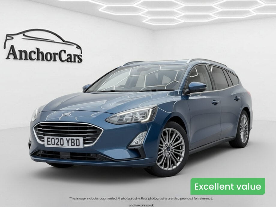 TadleyInsurance Group 15, 2 Previous Owners, Anchor Cars Tadley is proud to present this 2020 Ford Focus 1.5 EcoBlue Titanium X Estate 5dr Diesel Manual Euro 6 (120 ps), finished in blue. A highly practical and wellappointed estate, the Ford Focus combines modern styling with excellent versatility and everyday usability. The Titanium X specification enhances its premium feel, while the spacious estate body style provides impressive practicality, making it a superb option for families and drivers needing extra luggage capacity without compromising comfort or refinement. Powered by a 1.5litre EcoBlue diesel engine paired with a manual transmission, this Focus delivers smooth and efficient performance ideal for both daily commuting and longer motorway journeys. The engine offers strong fuel efficiency alongside responsive power delivery, while the manual gearbox provides precise control and an engaging driving experience. Inside, the cabin is thoughtfully designed with a clean and intuitive layout, offering a comfortable and refined environment for both driver and passengers. The estate configuration provides generous interior space and a large boot area, ensuring excellent practicality for everyday use, family travel or longer trips. For more information or to arrange a viewing, please contact Anchor Cars Tadley on 0118 9829 111 or visit www.anchorcars.co.uk .