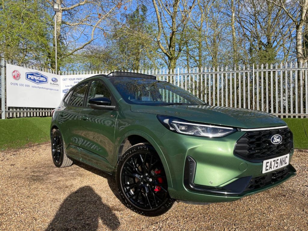 Insurance Group 25, 0 Previous Owners, FORD KUGA STLINE X BLACK PACKAGE 2.5 PHEV 243ps Auto in BURSTING Green / AGR Sensico EA75NHC with 1855 miles. Ford Warranty until 17/10/2028 ** Next service due: OCTOBER 2027Black Package with 20 " Gloss Black Alloy Wheel Upgrade / Red Brake Calipers with Gloss Black Inserts and Door Mirrors ** Opening Panoramic Glass Roof ** Technology Pack with Head up Display / LED Headlights and Coast to Coast Front Light bar ** Mini Spare Wheel Pack with Rear Boot Mat ** SYNC 4 Satellite Navigation with Wireless Apple Car Play Connectivity with Bang and Olufsen Premium Audio with BEO sound ** Hands Free Tailgate ** Door Edge Guards with Parking Pack ** Driver Assist Pack with Adaptive Cruise Control and Blind Spot Monitors ** Dual Zone Climate Control ** Keyless entry ** 360 Degree Camera ** 243ps Plug in Hybrid ** EGR Power Comfort Front Seats ** Privacy Glass ** 39.9 mile electric range ** 22g/KM Co2 Rating ** 61.4 mpg WLTP ** Luggage Mat Phase 1 charger included we offer 8.9% APR Low Rate Finance and all part exchanges are welcome .Black Roof Rails, Engine Immobiliser, Locking Wheel Nuts, Quickclear Heated Windscreen, Rear Centre Head Restraint, Rear Wiper, Sports Seats, Sports Suspension, Service Interval Indicator, Body Colour Bumpers, Front And Rear Head Restraints, Power Front/rear Windows With Global Close, Rear Privacy Glass, Tyre Pressure Monitoring System, Drivers Knee Airbag, 3x3 Point Rear Seatbelts, Red Brake Calipers, LED Daytime Running Lights, Front And Rear Parking Sensors, LED Rear Lights, Hands Free Power Tailgate, Winter Pack Kuga, Large Rear Spoiler, Ford Easy Fuel, LED Third Brake Light, Rear Seat Occupancy Alert, Evasive Steering Assist, Power Assist Steering, Ford MyKey Gen 2 Safety System, Thatcham Category 1 Alarm, Lane Keeping Aid With Lane Departure Warning, Remote Powered Central Double Locking Doors, 360 Degree View Camera, Rain Sensing Wipers, ECall (emergency Call), Airbags Front Driver/passenger, Front And Rear Curtain, Selectable Drive Modes, Electronic Stability Control (ESC) And ABS, Pre Collision Assist With Autonomous Emergency Braking, Power Opening Panoramic Roof, Auto Headlamps With High And Low Beam, Front LED Fog Lamps, 2nd Row Sliding Seats, Manual Child Proof Rear Door Locks, Keyless Entry And Ford Power Start Button (Keyless Start), 12.3" Digital Colour Instrument Cluster, Electronic Automatic Temperature Control (EATC), Single Front Passenger Seat, Rear Side Wing Doors, Dynamic Brake Support, Lane Centering Assist, Ford SYNC 4 Navigation With 13" Touchscreen, DAB Radio, Emergency Assistance, Andriod Auto/Apple CarPlay, 5G Modem & Ford Pass Connect, Power Heated Folding Door Mirrors With Puddle Lights, Memory Function And Camera, B&O Premium Audio System With 10 Speakers, Subwoofer And 2 USB Ports, Pop Out Door Edge Protectors, Partial Premium Touch Sensico Upholstery, Reverse Brake Assist, STLine Body Styling With Black Painted Bumper Details And Black Mirror Caps, 20" Black Ford Performance Wheels, Driver Assistance Pack Kuga Auto, Cross Traffic Alert With Active Braking, Clear Exit Assist, 1 Owner from New, Panoramic Roof, Heated Front Screen, Heated Seats, Manufacturer Warranty Balance, Driver Assist Pack, Adaptive Cruise Control, Blind Spot Monitors, Wireless Charge Pad, Bang & Olufsen Pro Audio, Head Up Display, Dual Zone Climate Control, Power / Memory Seats, Ford Auto Park Assist, Technology Pack,