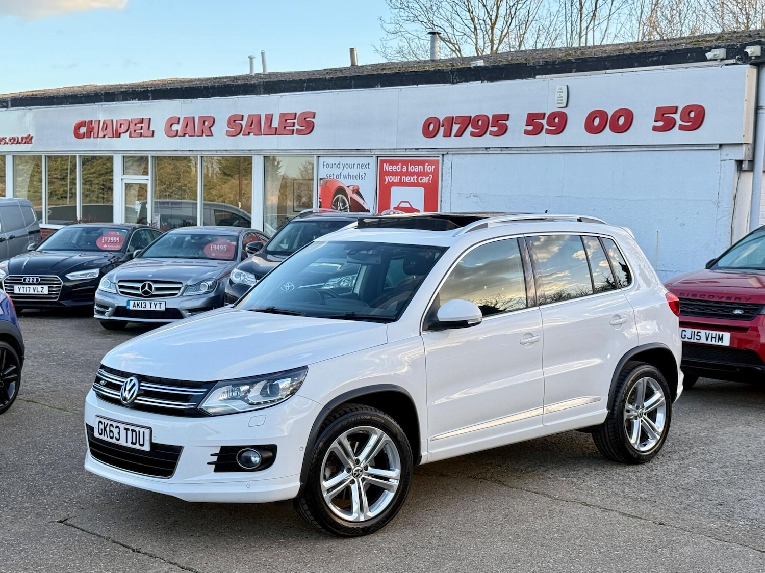 FavershamInsurance Group 18, 1 Previous Owner, Presented in excellent condition throughout, this 2013 Volkswagen Tiguan is finished in the desirable Candy White and has covered just 76,000 miles.Previously supplied by ourselves and has been maintained by us since, the vehicle is offered with a full service history, including a Cambelt and water pump replacement carried out in 2023 for added peace of mind.Specification includes an opening panoramic glass sunroof, rear parking sensors and 18 RLine Mallory alloy wheels.The factory alloy wheels have just been professionally refurbished in chrome silver and the car has been fitted with four brand new Kumho tyres.