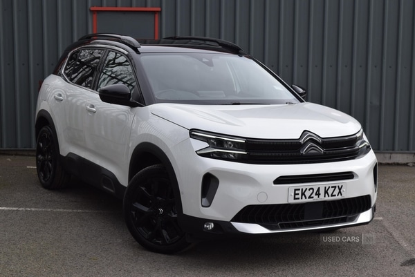Lisburn0 Previous Owners, The Citroen C5 Aircross 1.2 Hybrid 136 Eseries offers an inviting choice for those seeking comfort, practicality, and a refined driving experience. With a recorded mileage of 15,311, this vehicle balances low usage with thoughtful features designed for everyday journeys. The automatic transmission and advanced comfort front and rear seats contribute to a smooth and relaxed drive, while the panoramic glass sunroof and adjustable headrests provide a pleasant environment for all occupants.Finished in white, the exterior presents a cohesive and modern look with body colour door handles, front and rear bumpers, and silver painted skid plates. Glossy black accents on the structured grille, door mirrors, and longitudinal roof bars add a touch of sophistication, complemented by eseries edition badging. LED headlights and rear lights with distinct visual signatures, as well as front fog lights with a static cornering function, enhance visibility and style.The vehicle is equipped with a comprehensive specification, including a 10inch touchscreen interface with navigation, voice commands, and seamless smartphone integration through Android Auto and Apple CarPlay. Safety and convenience are prioritised through features such as blind spot monitoring indicators, an electrochrome autodimming rear view mirror, and keyless entry and start. Additional amenities include bizone air conditioning, multiple storage solutions, a multifunction leather steering wheel, and a variety of USB and power outlets for connectivity and charging.A strong focus on occupant protection is evident, with advanced airbag systems, ABS with EBD, dynamic stability control, and hill start assist. The C5 Aircross also features an antitheft alarm, keyless entry, remote central locking with deadlocks, and tyre underinflation indicators. Together, these elements deliver a reassuring level of security and support, making this vehicle a wellrounded option for a wide range of drivers
