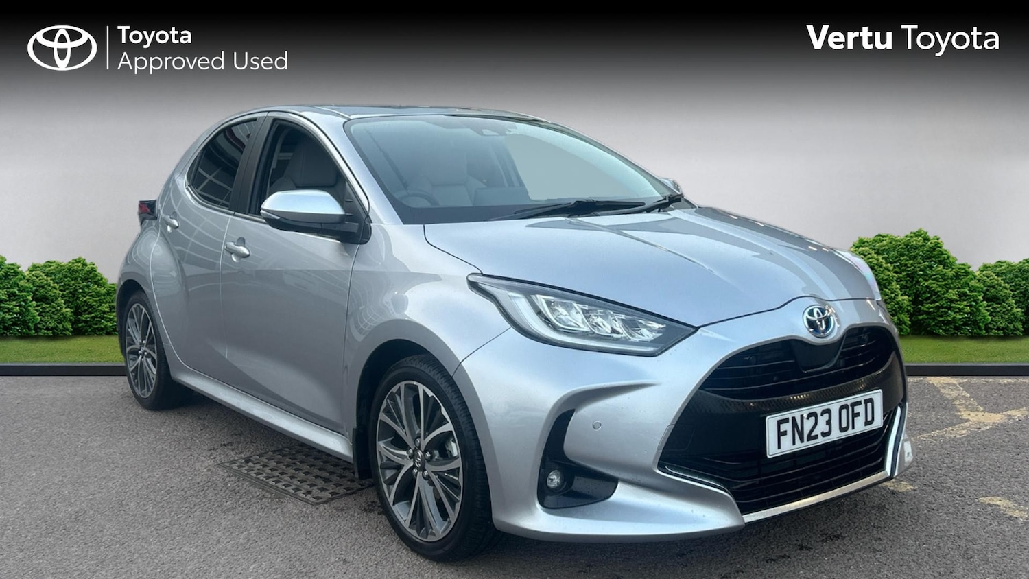 LoughboroughInsurance Group 14, 0 Previous Owners, 0, Franchise Approved, Now available is this superb 2023 Toyota Yaris Excel 1.5 Hybrid CVT, finished in elegant Silver Metallic and having covered just 10,294 miles from new. Combining sharp modern styling, exceptional fuel efficiency, and premium features, this Yaris is the perfect hatchback for drivers seeking reliability, comfort, and low running costs.Powered by Toyotas renowned 1.5litre selfcharging hybrid engine paired with a smooth CVT automatic transmission, it delivers responsive performance while achieving impressive fuel economy and low emissions. The hybrid system seamlessly alternates between petrol and electric power, providing a quiet and refined drive whether in town traffic or on the motorway.As the Excel specification, this model benefits from an excellent level of equipment, including stylish alloy wheels, halfleather upholstery, heated front seats, heated steering wheel, keyless entry and start, and dualzone climate control. The advanced touchscreen multimedia system includes Apple CarPlay, Android Auto, DAB radio, Bluetooth connectivity, and satellite navigation, keeping you connected wherever you go.Toyota Safety Sense comes as standard, offering features such as adaptive cruise control, lane trace assist, precollision system, and road sign assist for added confidence on every journey.With low mileage, fantastic specification, and Toyotas trusted hybrid technology, this Yaris Excel represents superb value.Contact us today to arrange your viewing or test drive..Air Conditioning, Climate Control, Metallic Paint, Cruise Control, Satellite Navigation, Alloy Wheels, Heated Seats, DAB Radio, Bluetooth, Parking Sensors, Stop Start, Low Mileage, Full Service History, USB, Manufacturer Approved, Adaptive cruise, Keyless EntryPush Button Start, AppleAndroid Play, Rear Camera, Auto Lights, Electric Folding Mirrors, Lane Departure, Lane Keeping Assist, Pre Crash Prevention& Rain Sensors, Rear privacy glass, Acoustic windscreen glass, Auto windscreen wipers, Front auto power windows with anti jam protection, Rear auto power windows with anti jam protection, Rear wiper, Rain sensor, Variable front intermittent wipers, ABS+EBD+Brake assist, Electronic parking brake, Hill start assist control (HAC), Emergency brake light system (EBS), Vehicle Stability Control (VSC), Ecall, Bluetooth connectivity, Voice recognition, Electric power steering, Adaptive cruise control, Reversing camera, Adjustable speed limit with speed warning