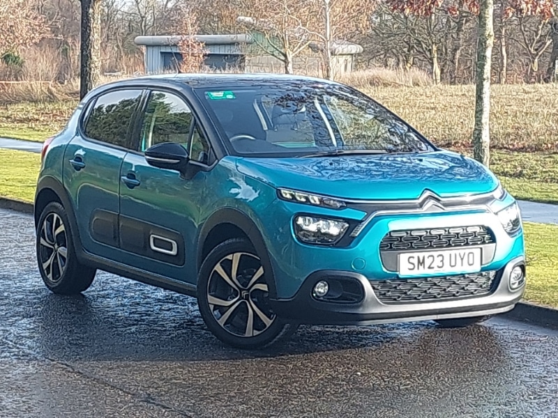 Insurance Group 11, Reversing camera, Citroen connected nav with DAB, 6 speakers, 7" captive touch screen, mirror screen includes apple carplay/android auto and bluetooth, Cruise control + speed limiter, Rear parking sensors, USB connection, Auto headlights, Electrically folding door mirrors, Visibility pack with automatic lights C3, Automatic air conditioning, Leather steering wheel with gloss black + satin chrome elements and audio/telephone controls, ISOFIX mounting on outer rear seats with top tether and labels indicating fixing points, 17" Vector diamond cut alloy wheels