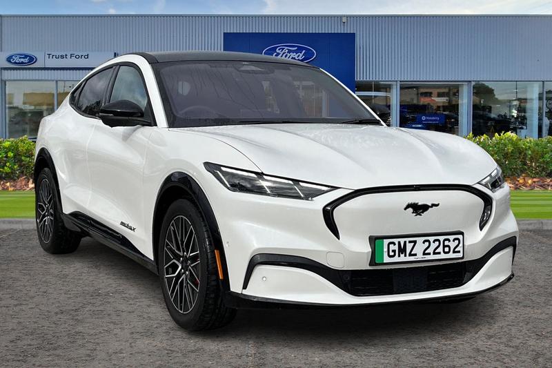 Insurance Group 43, 10.2 digital insturment cluster, 360 degree view camera, Applink remote control system, BLIS (Blind Spot Information System) with cross traffic alert, Distance alert and indication system, Electric power steering, Emergency services call system, Ford SYNC4A with 15.5Touch, DAB radio, Emer assist, Wireless carplay androidauto, 2 front, rear USB ports, FordPass connect, Connected naviation, Front and rear parking sensors, Hands free tailgate, Intelligent adaptive cruise control with stop and go + lane centering, Lane departure warning with lane keeping aid, Selectable drive modes active, whisper and untamed, Trip computer, Wireless charging pad, Adaptive LED Mustang signature headllamps, Black painted power fold heated mirrors with puddle light mustang logo projection, Blade front grille design, Body colour bumpers, Daytime running lights, Fixed full panoramic roof, LED 3rd brake light, LED Mustang signature tail lights, Quickclear heated windscreen, Rear privacy glass, Rear side wing doors, Rear wiper, Side cladding and wheel arches in piano black, 3 seat bench in 2nd row, 8 way power driver seats with lumbar support, 8 way power passenger seats with lumbar support, Ambient lighting, Dual electronic automatic temperature control, Front headrests, Front trunk, Heated front seats and steering wheel, One pedal drive, Perforated full sensico artificial leather upholstery, Rear head restraints, Single front passenger seat, 3 point rear seatbelts, ABS, Child locks on rear doors,