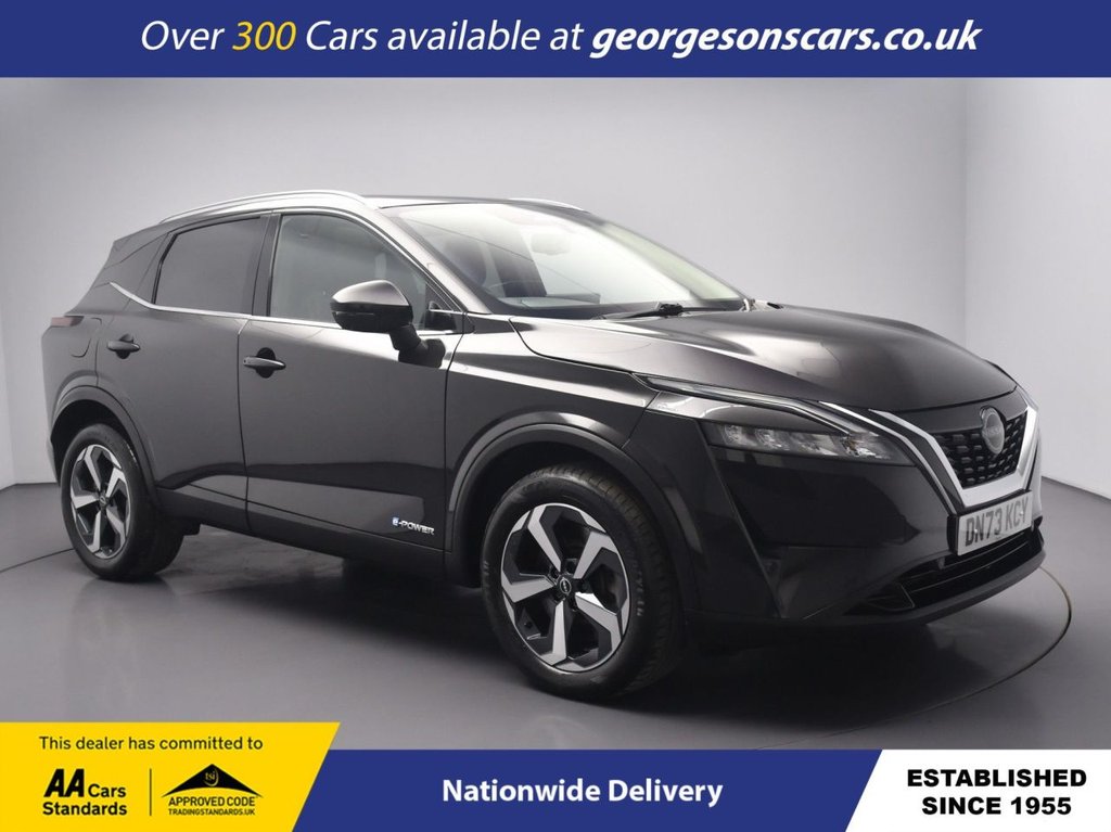 Liverpool1 Previous Owner, The Nissan Qashqai 1.5 h ePOWER NConnecta combines a responsive 1.5litre petrol engine with an electric motor for a total 190hp, delivering 062mph in 7.9 seconds and up to 53.3mpg in this frontwheeldrive setup with a smooth ePOWER automatic transmission. The NConnecta trim offers premium family versatility with a spacious interior for refined hybrid SUV driving. Enjoy the airy cabin with the panoramic roof, while integrated satellite navigation, Apple CarPlay, Bluetooth and DAB radio ensure seamless connectivity on every journey. Parking is effortless thanks to the 360degree camera and parking sensors, providing comprehensive visibility and confidence in tight spaces. Stay comfortable with dualzone climate control, offering personalised cooling yearround. Adaptive cruise control with speed limiter, lane assist, hill assist and blind spot assist enhance safety and relaxation on highways. The spacious fivedoor SUV design includes a 504litre boot for practicality Georgesons Cars, one of the leading used car dealerships near me, has been serving Liverpool and the wider Merseyside area since 1955. As a thirdgeneration familyrun business, we offer a wide variety of cars for sale, including over 300 quality used cars in Liverpool. Whether youre searching for cars for sale in Liverpool or reliable auto used cars, our inventory is pricechecked daily, ensuring competitive pricing. Rated 5stars on TrustPilot, Georgesons Cars proudly upholds the AA dealer promise and Chartered Trading Standards approval. Contact us today to explore our full range of cars for sale and let our team help you find your next car!.12v Power Sockets in Dash and Luggage Space, 3 Rear Headrests, 3 x 3Point Rear Seatbelts, 6 Speakers, 6040 Split Rear Folding Seats, ABS with EBD and Brake Assist, Active Brake Limited Slip, AMFM Audio System with DAB, Auto Dimming Rear View Mirror, Auto Hold Function, Auto Rear Wiper When Reversing, Automatic Dual Zone Climate Control with Pollen Filter, Blind Spot Warning, Bluetooth with Audio Streaming, Body Coloured Handles, Body Coloured Mirror Caps, Body Side Moulding, Chrome Interior Door Handles, Chrome Side Window Finisher, Curtain Airbags, Door Mirror Electrically Adjustable Heated Auto Folding with LED Turn Indicator, Drive Modes SportNormalEco, Driver and Passenger Airbags, Driver and Passenger Sun Visor with Illuminated Vanity Mirror, Driver Seat Back Pockets, DriverPassenger and Rear Seatbelt Reminder, EPedal STEP, ePOWER Badging, ePOWER Shifter, Electric Parking Brake, Electric SpeedSensitive Power Steering, Emergency and Breakdown Call, Engine Immobiliser, Engine Start Button, Follow Me Home Headlights, Front Centre Console and Armrest, Front Cupholders x2, Front Door with Bottle Holders, Front Parking Sensors, Front Seat Belts with Load Limiter and Pretensioners, Front Seatbelt Height Adjustment, Front USB Connections Type A and Type C, Full Digital 12.3in TFT Digital Combimeter, Google Maps Services Search Weather 3D Maps and Google Street View, Headlights High Beam Assist, Headlights LED, Height Adjustable Driver Seat, Height Adjustable Front Headrests, Hill Start Assist, Intelligent Around View Monitor, Intelligent Auto Headlight, Intelligent Blind Spot Intervention, Intelligent Cruise Control, Intelligent Driver Alertness, Intelligent Forward Collision Warning, Intelligent Front Emergency Braking with Pedestrian Recognition and Cyclist Recognition and Junction Assist, Intelligent Key, Intelligent Lane Intervention, Intelligent Rear Automatic Braking, Lane Departure Prevention, Lane Departure Warning, LED Daytime Running Lights, LED Rear Lights, Luggage Board System, Luggage Space Lighting, Maximum Speed Limiter, Moving Object Detection, Multifunctional Steering Wheel, Nissan Connect 12.3in Touchscreen Infotainment System, NissanConnect Navigation, One Touch Front and Rear Electric Windows with Remote OpeningClosing, Partially Body Coloured Bumpers, Passenger Seat Back Pockets, Privacy Glass, Puncture Repair Kit, Rain Sensing Wipers, Rear Cross Traffic Alert, Rear Door Child Locks, Rear Door with Bottle Ho