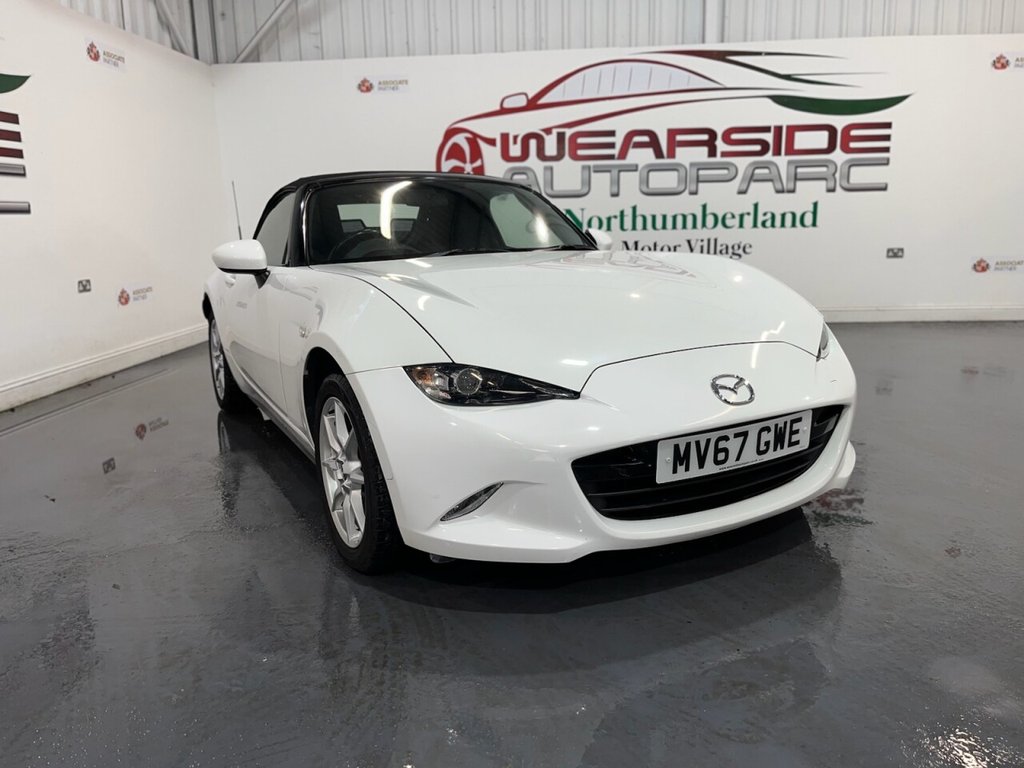 AlnwickMazda MX5 1.5 SKYACTIVG SE Convertible 2dr Petrol Manual Euro 6 (131 ps). This stylish and agile Mazda MX5 comes with two keys and a recorded service history at 26,000 miles, reflecting careful ownership and regular maintenance. Powered by Mazdas responsive 1.5 SKYACTIVG petrol engine producing 131 ps and paired with a manual gearbox, it delivers an engaging and efficient driving experience. The specification includes alloy wheels, electric door mirrors, keyless start, air conditioning, and a leather steering wheel. A classic opentop roadster with excellent handling and low running costs, ideal for drivers who enjoy pure driving pleasure. All vehicles are delivered serviced, with a full 12 months clean (NO ADVISORIES) MOT. All vehicles also come with free complimentary 12 months breakdown cover. All vehicles are supplied with a FREE 6 months warranty. An upgraded, extended 12 month warranty at reasonable additional cost is also available. P/X welcome. Please check our website for our up to date stock of over 400 cars and vans, an excellent selection is always available..alloy wheels , electric door mirrors , keyless start , air conditioning , leather steering wheel , 16in Alloy Wheels Silver, Air Conditioning Manual, Air Conditioning Dials Black, Air Vent Surrounds Black, Analogue Speedometer, Automatic Passenger Airbag Deactivation System, Auxiliary AUX and USB Input, Body Coloured Door Mirrors, Chrome Meter Rings, Coinbox, Convertible Top Premium Cloth Soft Top with Heated Rear Window Manually Operated, Cupholder Front, DHS Deployable Hood System, Double Pinion Electric Power Assisted Steering DPEPAS, Driver and Passenger Front Airbags, Dual Exhaust System, Dynamic Stability Control DSC with Traction Control System TCS, Electric Windows One Touch Auto Down, Electrically AdjustableHeated Door Mirrors, Emergency Tyre Repair Kit, Engine StartStop Button, Fashion Bar Cladding, FourWheel AntiLock Braking System 4WABS with Electronic BrakeForce Distribution EBD, Fuel Filler Lid Body Colour, Gear Knob Leather with Chrome Surround, Gear Shift Indicator, Halogen Daytime Running Lights, Handbrake Leather Wrapped, Headlights ComingLeaving Home, Headlights LED with Auto Headlight Levelling, Hill Hold Assist, ISOFIX Child Seat Anchorage Passenger Seat, Inner Door Handles Satin Silver, Interior Courtesy Light, Multimedia System, Rear Brake Light High Mounted, Remote Central Locking with Deadlocking and Remote Boot Release, SKYACTIVBody Engineered Triple H Body Structure to Help Protect Occupants from Impact Forces, SRS Supplementary Restraint System, Seatbelts 3 Point ELR 2x with PreTensioners, Seatbelts Reminder Screen with Audible Warning, Seats Drivers Manual SlideRecline and Tilt Adjustment, Seats Front Passenger Manual Slide and Recline Adjustment, Side Airbags, Steering Wheel Leather with Chrome Bezel, Steering Wheel Mounted Audio Controls, Steering Wheel Tilt Adjustment, Storage Rear Centre Box with Lockable Lid, Sunvisors Drivers and Passengers with Covered Vanity MirrorTicket Holder, Thatcham Category 1 Alarm and Immobiliser, Trip Computer, Tyre Pressure Monitoring System, USB iPod Connectivity, Upper Door Trim Black, Windblocker, Wipers Front Adjustable Speed with Intermittent