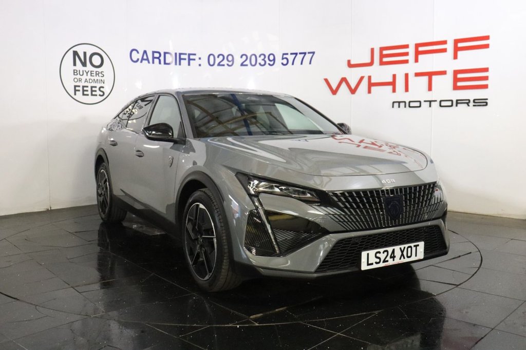 CardiffInsurance Group 21, 0 Previous Owners, NO BUYERS FEES Peugeot warranty until April 2027, one owner, service history, spare key supplied APPLE CAR PLAY.12V Power Socket, 180 Degree Colour Reversing Camera with Wash System, 19in Alloy Wheels Graphite Diamond Cut in Onyx Black Gloss, 408 Model Badging on Front and Rear, 8 Colour Personalisable Ambient Lighting Door Panels, ABS Anti Lock Braking System, Active Safety Brake Night Function Cyclists Pedestrians, Advanced Emergency Braking System, Air Purification System Clean Cabin, Airbags Adaptive Driver and Front Passenger, Airbags Driver and Front Passenger Side, Airbags Front and Rear Curtain, Alarm with AntiLift Sensor, Alloy Wheel Star Centre Cap, Aluminium Door Sills and Boot Sill, Arch Design Central Console with Storage, Attention Warning in Case of Driver Drowsiness, Automatic Air Conditioning with AQS 3 Air Quality System, Automatic Door Locking When Moving Off, Automatic Hazard Light Activation Upon Heavy Brake Application, Automatic Post Collision Braking, Bluetooth Telephone Facility, Cabin Stitch Detailing in Adamite Green, Central Front Armrest with Storage Compartment, Centre Console with 2 Cup Holders, Child Locking Functionality on Rear Doors, Compact Automatic Gearbox Selector, Cybersecurity Measures, DAB Digital Radio, Dark Tinted Rear Side and Tailgate Windows, Deadlocking, Door Handles Body Coloured, Door Mirror Shells Nera Black, Driver Attention Warning, Driver Sport Pack, Drivers Profile Setting Available for up to 8 Drivers, EBA Emergency Brake Assist, ESP Electronic Stability Programme with Hill Start Assist, Electric Heated and Power Folding Door Mirrors, Electric Parking Brake, Electric Power Steering with Reach and Rake Adjustable Steering Column, Electronic Brakeforce Distribution EBD, Electronic Code Immobiliser, Emergency Stop Signal, Event Data Recorders, Extended Traffic Sign Recognition, Exterior Temperature Indicator with Ice Warning, Frameless Electrochrome Rear View Mirror, Front Grille with Vertical Body Colour Stamping, Front Optimised Safety Headrests and Rear Retractable Headrests x3 HeightAdjustable, Front ThreePoint Retractable Seatbelts with Force Limiters, Front USB Socket x2, Front and Rear Parking Sensors, Full Matrix LED Headlights with Automatic Adjustment, GT Model Designation Badging, Gloss Black B Pillar, Gloss Black Rear Cluster Connecting Strip, Gloss Black Waistbelt Window Weather Strips, Glovebox, Grab Handles x4 Retractable, Heated Rear Windscreen, Heated Steering Wheel, High Beam Assist, High Performance Loudspeakers, High Vent Air Vent System, ISOFIX Ch