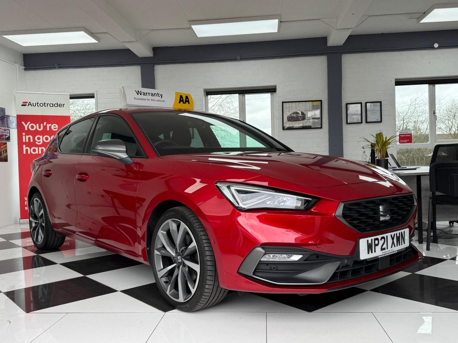 WroxhamInsurance Group 19, 2 Previous Owners, This 2021 SEAT Leon eTSI FR Sport boasts a full service history, with its last service completed on 20260116 at 46458 miles, and an MOT valid until January 2027, offering peace of mind for its next owner. This Euro 6 compliant 1.5 litre petrol hybrid model comes with a 3 month warranty. The FR Sport trim level enhances the driving experience with a heated leather flat bottomed, perforated steering wheel and a powered driver's seat with memory function, complemented by manual height adjustment for the passenger seat. Experience effortless parking with the Park Assist system, which includes front and rear parking sensors. The Leon also features separate daytime running lights with automatic headlight control and an automatic coming home feature. Stay connected on the go with Full Link smartphone integration, offering wireless Apple CarPlay and wired Google Android Auto. The large boot space provides ample room for your luggage, and with an acceleration of 062mph in just 8.7 seconds, this SEAT Leon eTSI FR Sport offers a dynamic and practical driving experience that stands out from the crowd.