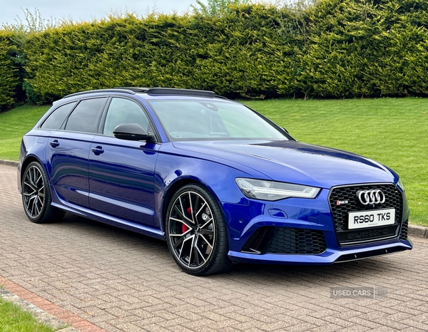 Magherafelt2 Previous Owners, February 2018 Audi RS6 Performance 4.0T FSI Quattro Auto in Audi Exclusive Mica Racing Blue. Full Service History & MOT'd to June 2026.Loaded with spec including Diamond Stitched Leather / Suede Interior, Heated Seats, Navigation System, HeadsUp Display, Dynamic Pack, Tilt & Slide Panoramic Glass Roof, Bluetooth, DAB Radio, 21" Upgraded Alloys, Central Armrest, Cruise Control, Privacy Glass etc.FINANCE AVAILABLE AT KEEN RATES!!Viewing by Appointment Only Please.