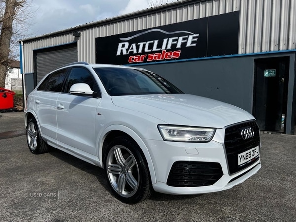 portadown1 Previous Owner, 2015 AUDI Q3 2.0 TDI S line Plus SUV 5dr Diesel S Tronic quattro, ONLY 87709 MILES, MOT SEPT 26, 2 SERVICES, ONE OWNER FROM NEW, HIGH SPEC QUATTRO SLINE PLUS MODEL IN GLACIER WHITE SPEC INCLUDES FULL ELECTRICS, DAB/SAT NAV RADIO, HALF LEATHER HEATED SEATS, HANDS FREE, REVERSE SENSORS, ALLOYS, CAR IS IN IMMACULATE CONDITION FIRST TO VIEW WILL BUY