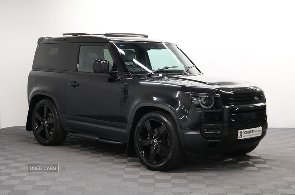 Newry0 Previous Owners, 2023 Land Rover Defender 90 3.0 D250 MHEV HSE 3dr Auto 4WD (250 ps)Specification includes £5330 optional factory equipment: Panoramic Glass Roof Meridian Surround Sound System Black Exterior Pack Privacy Glass Spare Wheel Cover Air Suspension Pack Electrically Deployable Towbar Classic Mud FlapsVehicle is shown with a brand new upgrade 22" Alloy Wheel and Tyre package (£1495 optional extra) or it can be returned to the standard wheels, whichever suits you best.Vehicle is offered in excellent condition throughout and comes with a full Land Rover service history.WHY BUY FROM US Multi Award winning familyrun dealership Over 150 Quality Used Vehicles onsite Transparent and honest pricing without hidden costs Top prices paid for your part exchange Competitive finance packages tailored to suit your requirements All vehicle's will come fully checked, serviced (if required) and valeted by our onsite technicians All vehicles will come with a comprehensive Comiskey Motors inhouse Warranty Nationwide delivery service available Complete Aftercare Services...We offer our customers great choice and value along with the highest level of customer service as standard. We are extremely passionate about what we do and we hope that shows in the buying experience. We look forward to meeting you soon and hope you will become one of our many happy customers