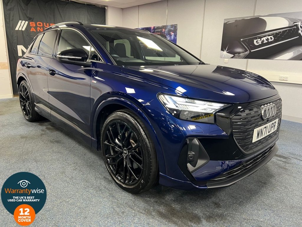 1 Previous Owner, This Beautiful Audi Q4 ETRON comes with a full service history, it has just undergone an inspection with 2 New tyres being fitted. It comes with a full advisory free MOT. We are also including a 12 Month Warranty with Breakdown cover, It has undergone a professional valet inside and out along with a full inspection to give you the added reassurance you will be buying a reliable car from a trusted retailer. This vehicle also comes with Sat nav, Heads up display, Heated electric front seat with drivers memory, Sonos sound system including SD/USB/AUX/DAB Digital Radio, Audi smart phone including Apple Car Play and Android Auto, wireless phone charger, Digital cockpit, Steering wheel mounted controls, Bluetooth with Bluetooth audio, Voice command, Air con, Tri zone climate control, Audi drive select, Cruise control with lane assist and side assist, Front & rear parking sensors with reverse camera, Auto lights and wipers, LED Exterior lighting, Electric parking brake with auto hold, Electric boot, Heated electric door mirrors with auto fold, Electric windows, Privacy glass, 21" Alloy Wheels, 2 Keys. SOURCE ANY CAR OFFERS A FULL CARE PACKAGE. ALL VEHICLES COME WITH A COMPREHENSIVE WARRANTY AS STANDARD (unless otherwise stated) HOWEVER MANY CUSTOMER TAKE OUT OUR UPGRADED WARRANTY PACKAGE! PX WELCOME,COMPETITIVE FINANCE ARRANGED,.110kW DC Charging Capability, 2 USBC Ports with Charge and Data Functions, 20in Alloy Wheels 5VSpoke Polygon Audi Sport Matt Titanium Grey Gloss Turned Finish, 21in Alloy Wheels 5WSpoke Audi Sport Platinum Grey, 3Zone Electronic Climate Control, 4Way Electric Lumbar Support for Front Seats, 7.2 kW Onboard Charger, ABS AntiLock Braking System, AC and DC Charging access Point on the Rear Right, Active Vehicle Alerting System AVAS, Aluminium Look Interior Elements, Ambient Lighting Package Plus, Anti Theft Locking Wheel Bolts, AntiTheft Alarm, Assistance Package Advanced, Audi Connect Navigation and Infotainment Services Plus (3 Year Subscription From New), Audi Connect Safety and Service ecall, Audi Drive Select, Audi PreSense Front with Pedestrian and Cyclist Recognition, Audi Smartphone Interface, Audi Sound System, Audi Virtual Cockpit 10.25in Display, Auto Dimming and Frameless Rear View Mirror, Black Door Mirror Housings, Black Roof Rails, Black Styling Package, Bluetooth Interface, Camera Based Traffic Sign Recognition, Cloth Headlining in Black, Comfort and Sound Package, Comfort Auxiliary Air Conditioning, Compact etron Charging System, Contrast Bumpers in Manhattan Grey Paint Finish, Cruise Control with Speed Limiter, DAB Digital Radio, Driver and Front Passenger Airbag with Front Passenger Airbag Deactivation, Electric Windows Front, Electrically Adjustable Front Seats, Electronically Operated Child Locks, First Aid Kit and Warning Triangle and Safety Vests, Folding Door Mirrors with AutoDimming Function for Both the Drivers and Passengers Side Electrically Folding Adjustable and Heated with BuiltIn LED Side Indicators and KerbView Function for Passenger Side, Front and Rear Floor Mats, Front Centre Armrest, Front Door Sill Trims with Aluminium Inlay Illuminated with S Logo, Front Side Airbags with Head Level Airbag System and Front Interaction Airbag, Headlight Washers, Heated Front Seats, Household Plug Type G GB, ISize Child Seat Mounting on the Front Passenger Side and ISize and Top Tether on the Outer Rear Seat, Industry Plug CEE 32 A230 V Long and Straight, Inlays Darkened Matt Brushed Aluminium, Keyless Go, Lane Departure Warning, Leatherette Door Armrests, Matrix LED Headlights with Digital Light Signatures Dynamic Light Sequencing and Dynamic Indicators, Memory Function for the Driver Seat and the Exterior Mirrors, MMI Navigation Plus with High Resolution 11.6in Touchscreen Colour Display