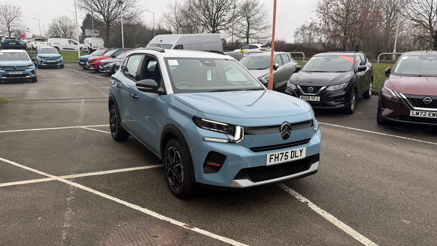 1 Litre Bottle Storage in Front and Rear Door Pockets, 23 13 Split Folding Rear Bench, Air Vents 2 Side and 2 Central on Dashboard, Anchoring Rings on Boot x4, Bag Support Hook in Boot, Central Storage with 2 Cup Holders, Colour Clip on Front Bumper and CPillar, Drivers Seat Height Adjustment, Drivers and Passengers Sunvisor with Courtesy Mirror, Fixed Boot Light, Front Head Restraint with Height Adjustment, Front Seats Adjustable with ForwardBack Slide and Adjustable Backrest, Gear Knob Matt Black with Gloss Black Insert, Glove Box Closed, Grey Decor on Dashboard, Grey Decor on Front Doors, Height and Reach Adjustable Steering Wheel, LED Front Lighting Panel with Map Reading Lights, Manual Air Conditioning, Map Pockets in Back of Driver and Front Passenger Seats with Additional Pocket for Smartphone Storage, Padded Fabric Armrests in Front and Rear Doors Trimmed in LeatherEffect Textile Featuring Happy Tags Labels, Parcel Shelf, Standard DayNight Switchable Interior Rear View Mirror, Steering Wheel Leather Effect with Gloss Black and Chrome Elements and Integrated Audio Telephone Cruise Control Speed Limit Controls, Three Rear Seats with Head Restraints, 1 USBC Connection Data and Charging On Dashboard, 1 USBC Fast Charge in Row 2, 12V Socket On Console, Active Lane Departure Warning System, Automatic Intelligent Beam Headlights, Citroen Advanced Comfort Suspension with Progressive Hydraulic Cushions, Citroen connect box emergency and assistance system, Citroen HeadUp Display, Connected Services, Cruise control with speed limiter, DAB Radio 6 Loudspeakers 10.25in Capacitive Touchscreen Wireless Mirror Screen with Apple CarPlay and Android Auto Bluetooth, Electric Power Steering, Gear Shift Indicator, LED Daytime Running Lights, LED Headlights with Electric Levelling, Multifunction Trip Computer, Outside Temperature Indicator, Parking Sensors Rear, Tyre Pressure Monitoring System, 17in Alloy Wheels Atacamite Diamond Cut BiTone, Black Roof Bars, Black Wheel Arch Extensions, Body Colour Front and Rear Bumpers, Electric Front Windows with Auto Up and Down, Electric Rear Windows, Exterior Mirrors Electric Heated Electrically Folding, Gloss Black Exterior Door Handles, Gloss Black Finish B and C Pillar, Gloss Black Rear View Mirror Caps, Heated Rear Window, Interior Door Handles Chrome Effect, Rear Spoiler, Rear View Mirror with Integrated Turn Indicators, Tinted Side Windows, Visibility Pack, ABS