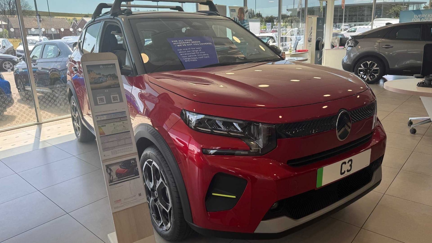 0 Previous Owners, 1 Litre Bottle Storage in Front and Rear Door Pockets, 23 13 Split Folding Rear Bench, Air Vents 2 Side and 2 Central on Dashboard, Anchoring Rings on Boot x4, Automatic Air Conditioning, Bag Support Hook in Boot, Central Storage with 2 Cup Holders, Colour Clip on Front Bumper and CPillar, Drivers Seat Height Adjustment, Drivers and Passengers Sunvisor with Courtesy Mirror, Electrochrome AutoDimming Interior Rear View Mirror, Fixed Boot Light, Front Head Restraint with Height Adjustment, Front Seats Adjustable with ForwardBack Slide and Adjustable Backrest, Glove Box Closed, Grey Decor on Dashboard, Grey Decor on Front Doors, Heated Steering Wheel, Height and Reach Adjustable Steering Wheel, High Console with Armrest and Closed Storage, LED Front Lighting Panel with Map Reading Lights, Map Pockets in Back of Driver and Front Passenger Seats with Additional Pocket for Smartphone Storage, Padded Fabric Armrests in Front and Rear Doors with Labels, Parcel Shelf, Seats Heated Front, Steering Wheel Leather Effect with Gloss Black and Chrome Elements and Integrated Audio Telephone Cruise Control Speed Limit Controls, Three Rear Seats with Head Restraints, Visibility Pack, 1 USBC Connection Data and Charging On Dashboard, 1 USBC Fast Charge in Row 2, 1 USBC Fast Charge on High Console, 12V Socket On Console, 7.4kW SinglePhase Onboard Charger, Active Lane Departure Warning System, Automatic Intelligent Beam Headlights, Citroen Advanced Comfort Suspension with Progressive Hydraulic Cushions, Citroen connect box emergency and assistance system, Citroen HeadUp Display, Connected Services, Cruise control with speed limiter, DAB Radio 6 Loudspeakers 10.25in Capacitive Touchscreen Wireless Mirror Screen with Apple CarPlay and Android Auto Bluetooth and 3D Satellite Navigation, Electric Power Steering, Fast Charging DC 100kW, Fog Lights Integrated into the Front Bumper, LED Daytime Running Lights, LED Headlights with Electric Levelling, Mode 3 Charging Cable Singlephase 7kW 6 Metres, Multifunction Trip Computer, Outside Temperature Indicator, Parking Sensors Rear, Rear Lights LED, Reversing Camera, Tyre Pressure Monitoring System, Wireless Smartphone Charger, eToggle Gear Selector, 17in Alloy Wheels Atacamite Diamond Cut BiTone, Acoustic Windscreen Heated, Black Roof Bars, Black Wheel Arch Extensions, Body Colour Front and Rear Bumpers, Dark Tinted Rear Side and Tailgate Windows, Electric Front Windows with