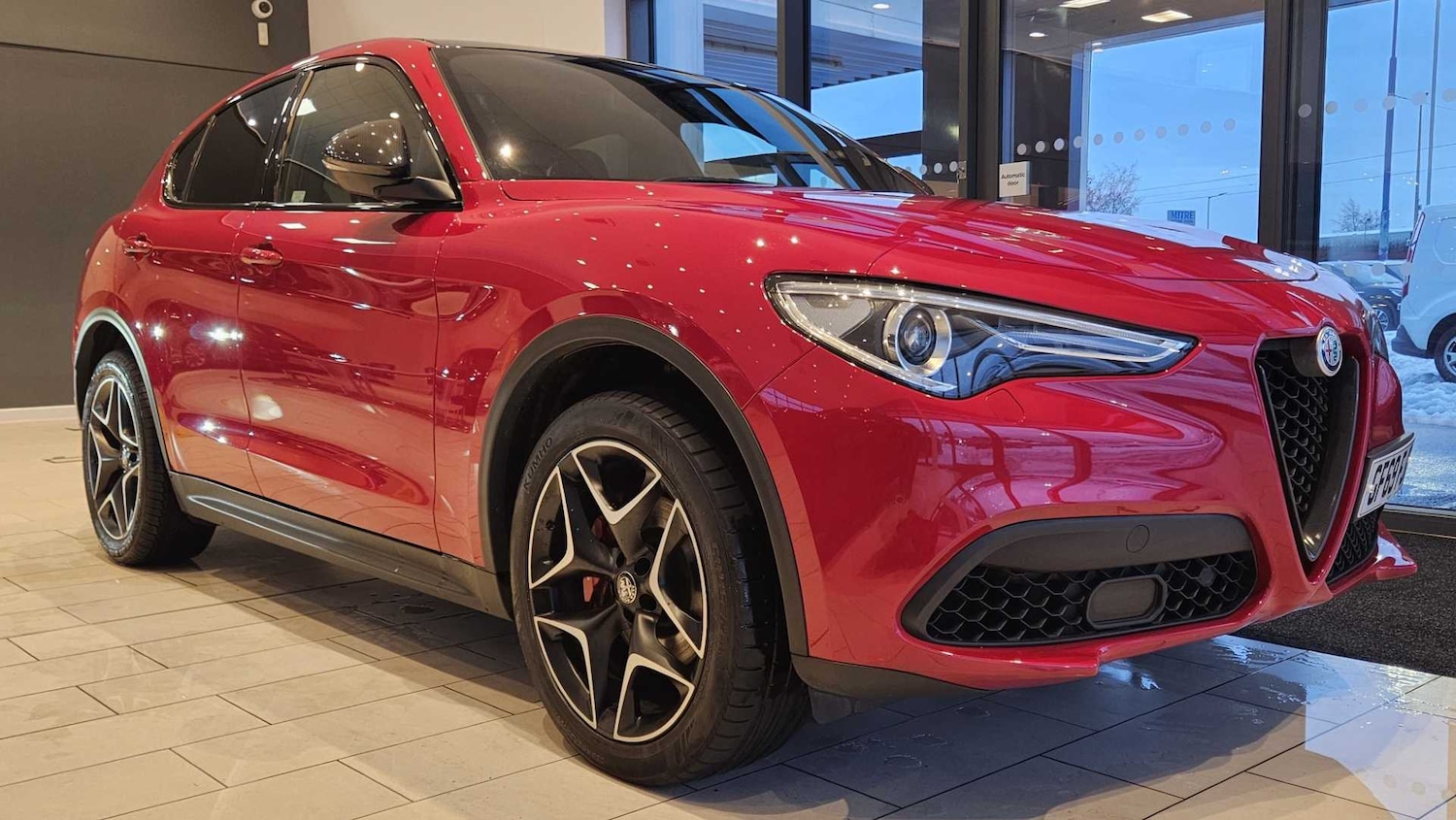 Sunroof Power Express OpenClose, Apple CarPlay and Android Auto, Alfa Red, Sound Theatre by Harman Kardon, Sports Leather Black with Black and Dark Grey Stitching, 20in Alloy Wheels Black Diamond, Black Window Surrounds, Brake Calipers Red, Carbon Fibre V Grille Surround MOPAR, Carbon Mirror Covers, Dark Finish Exhaust Tips, Dark Finish Skid Plate, Dark StelvioQ4 Badge, Electric Windows Front and Rear, Fix and Go Puncture Repair Kit, Heated Washer Nozzles, Kick Plates Aluminium, Laminated Glass, Power Folding Mirrors, Privacy Glass Rear, Adaptive Cruise Control, Alfa Connect 3D Nav 8.8in Infotainment System, Alfa DNA Driving Mode Selector, BiXenon Headlights 35W AFS, Connectivity USB & Auxin Armrest Ports, DAB Radio, Darkened Rear Tail Lights, Forward Collision Warning FCW, Frequency Selective Damping Suspension, Headlamp Washer, Headlights Auto On Dusk Sensor, Lane Departure Warning LDW, Power Steering, Sound Theatre, TMC Pro, TPMS Tyre Pressure Monitoring System, West European Map, 6Way Electrically Adjustable Drivers Seat with 4 ways Lumbar Adjuster with Memory, 6Way Electrically Adjustable Passenger Seat, 7in Colour TFT Instrument Cluster, Aluminium Shift Paddles on Steering Column, Aluminium Sports Pedals and Footrest, Aluminium Tunnel Cover Dashboard Insert Door Handle Surround, Ambient LED Lighting Front and Rear, Bolster Support with Electrical Adjustment, Convenience Pack, DualZone Automatic Air Conditioning, Electrochromic Rear View Mirror, Handsfree Tailgate, Heated Steering Wheel, Leather Wrapped Dashboard and Upper Door, Power Tailgate, Rain Sensing Wipers, Seats Heated Front, Sports Leather Steering Wheel with MultiFunctional Controls and Start Button, ABS Anti Lock Braking System, Airbags Driver, Airbags Passenger, Autonomous Emergency Braking AEB, Driver Assistance Pack, Engine Sound Enhancement, Hill Descent Control, Integrated Braking System IBS, Vehicle Theft Alarm with Hood Protection and Intrusion Sensor Thatcham