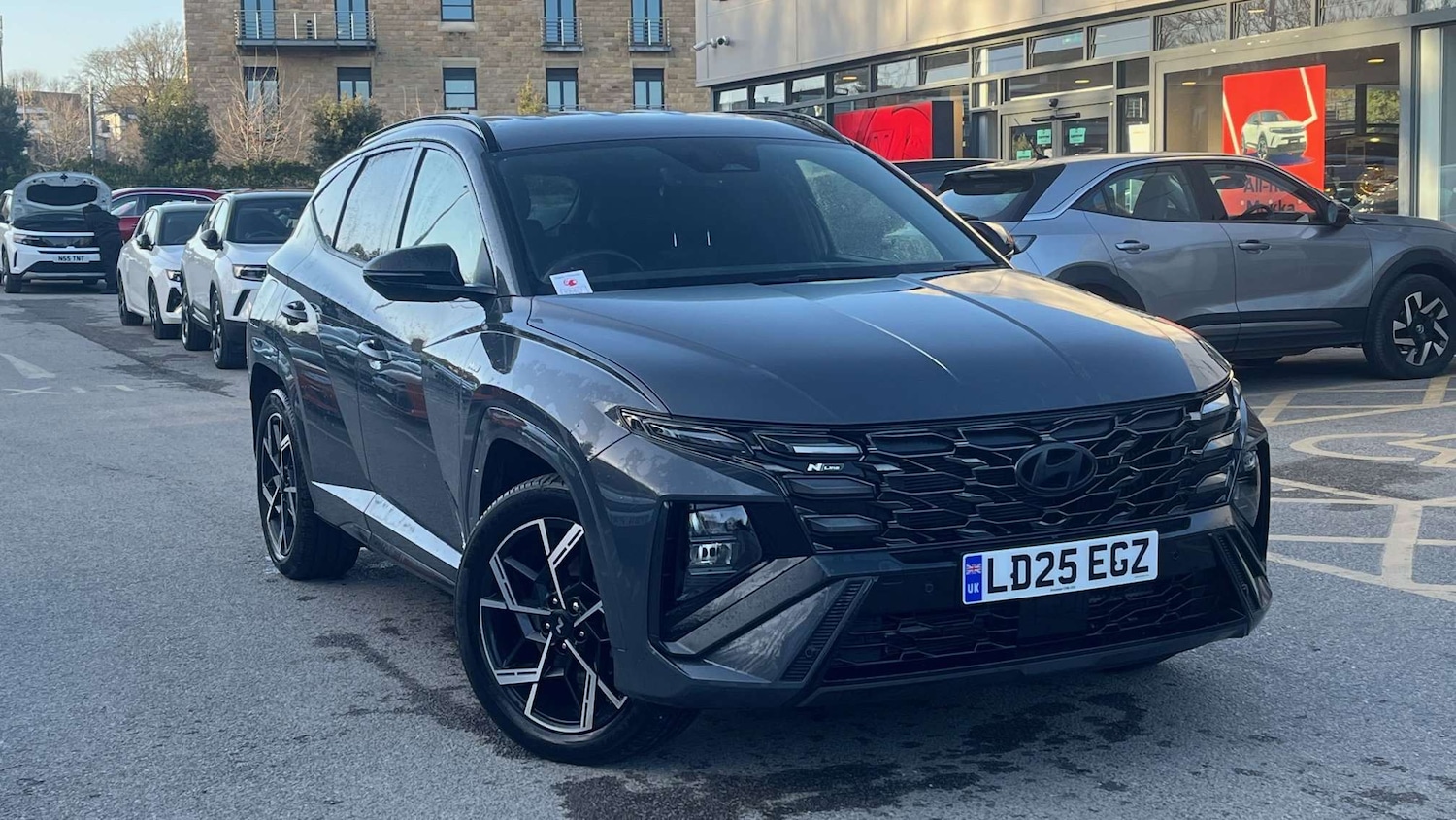 Full Dealer History, 12.3in Widescreen Navigation with Bluelink and Mapcare, 12V Power Outlet Front Centre Facia and Luggage Compartment, BlueLink, Bluetooth Connectivity, Charging Cable 7 Pin Type 2, Cruise Control Smart Adaptive Speed Control with Stop and Go Function, Daytime Running Lights LED, Drive Mode Select, Forward CollisionAvoidance Assist FCA with Car Pedestrian and Cycle, Forward CollisionAvoidance Assist Junction Turning, Headlights Automatic with Dusk Sensor, Headlights LED, Intelligent Speed Limit Assist ISLA, Over The Air OTA Navigation Map Updates, Parking sensors Front and Rear, Parking System Rear Camera and Guidance System, Phone Connection Android Auto, Phone Connection Apple CarPlay, Power Assisted Steering, Rear Lights LED, Speakers 2 Tweeters 2 Front 2 Rear, Trailer Wiring Package, Tyre Pressure Monitoring System with Individual Tyre Pressure Display, USB C Front x2, USB C Rear x2, Windscreen Washer Fluid Sensor and Warning Indicator, Wireless Phone Charging Pad, ECall, 19in Alloy Wheels NLine Design, Bumper Mouldings Glossy Black, Door Mirrors Electric Adjustment and Heated with Power Folding Function, Door Mirrors with Integrated Indicators Body Coloured, Electric Windows Front and Rear with AntiTrap Mechanism and One Touch Control, Exterior Door Handles Body Coloured, Locking Wheel Nuts, N Line Design Package, Privacy Glass Rear Windows and Tailgate, Roof Rails, Tyre Repair Kit, Wheel Arch Inserts Body Coloured, 64 Colour Selectable Ambient interior Lighting, Adjustable Head Restraints, Air Conditioning Climate Control Dual Zone, Armrest Front with Storage, Armrest Rear with Cup Holders, Automatic Dimming Rear View Mirror, Automatic Windscreen Wipers with Rain Sensor, Bottle Holders Front Centre Console and Doors, Drivers Seat Height Adjustment Manual, Drivers Supervision Instrument Cluster with LCD Display 12.3in, Front Passengers Seat Height Adjustment Manual, Heated Front Seats, Heated Steering Wheel, Interior Light Luggage Compartment, Interior Light Map Reading Lights, Lane Follow Assist LFA, Leather Wrapped Steering Wheel and Gear Knob, Luggage Cover, Luggage Hooks, Luggage Net, Metal Pedals, N Line Interior Design Package, Rear Seat Remote Folding Function, Rear Side Window Blind, Seats 402040 Split Folding Rear, Smart Electric Tailgate, Soft Touch Rear Door Paneling, Steering Wheel Audio and Phone Controls, Sun Visors with Driver