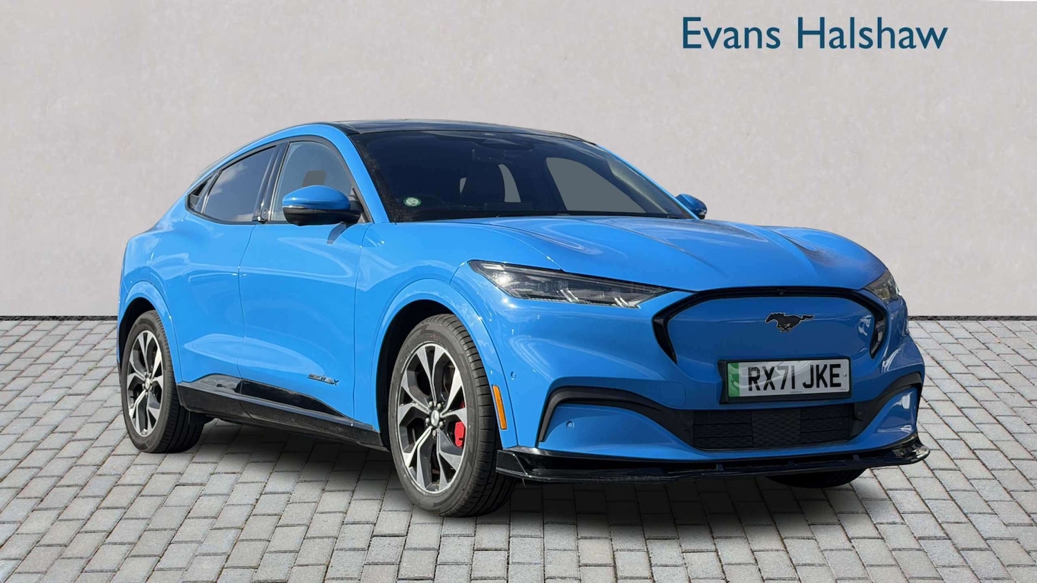 1 Previous Owner, Grabber Blue, Perforated Sensico Black with Blue Stitching, 10.2in Full Digital Cluster and 15.5in Central Touch Screen, 360 degree Camera, Adaptive LED Mustang Signature Headlamps, Advanced Active Park Assist, Applink Remote Control System, BO Premium Sound System 10Speaker including Dashboard Sound Bar, BLIS Blind Spot Information System with Cross Traffic Alert, Ford VarioPower Charging Cable, FordPass Connect Embedded Modem, Front and Rear Parking Sensors, High Power Charging Cable, Home Charging Cable, Intelligent Adaptive Cruise Control, LED Mustang Signature Taillights, Power Steering, Rear View Camera, SYNC with Connected Navigation and Natural Voice Search, Selectable Drive Modes ActiveWhisperUntamed, Wireless Device Charging Pad, 19in Alloy Wheels Black Machined, Blade Front Grille Design, Body Colour Bumpers, Body Colour Powerfold Mirrors with Puddle Light Mustang Logo Projection, Electric Windows Front, Full Panorama Roof, Privacy Glass, Quickclear Heated Windscreen, Red Brake Calipers, Side Cladding and Wheel Arches Body Colour, 8Way Power Driver and Passenger Seats, Air Conditioning Dual Zone Electronic Automatic Temperature Control, Dark Headliner, Front Trunk, Handsfree Tailgate, Heated Driver and Passenger Seats, Heated Steering Wheel, One Pedal Drive, ABS Antilock Braking System, Airbags Driver and Front Passenger, ELatch Keyless Entry System including BPillar Keypad Access, Lane Keeping Aid with Lane Departure Warning, PreCollision Assist with Forward Collision WarningDynamic Brake SupportAutonomous Emergency Braking, Thatcham Category 1 Alarm