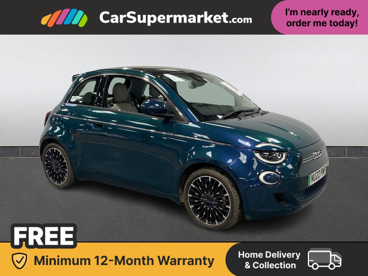 Insurance Group 18, 0 Previous Owners, Presented in green, this fully electric Fiat 500 La Prima offers stylish city driving with zero emissions and impressive technology. Highlights include satellite navigation, blind spot monitoring, Bluetooth connectivity, traffic sign recognition, Android Auto and Apple CarPlay. The vehicle also benefits from optional Ocean Green paint and ecoleather interior in beige with grey braided dashboard detailing, with options totalling £600.