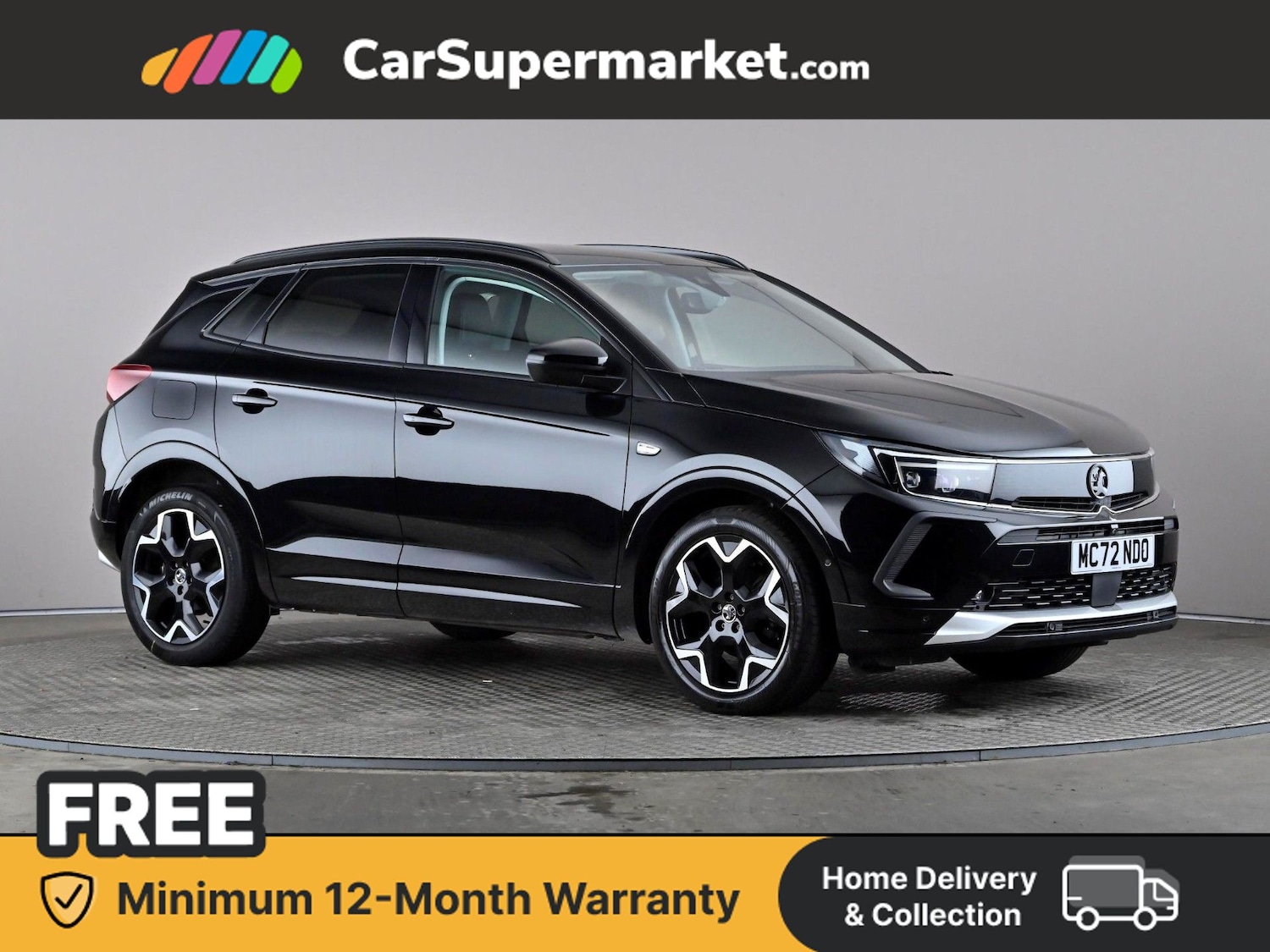 Vauxhall Grandland 1.5 Turbo D Ultimate Auto (Black) Highspec SUV with adaptive cruise control, satellite navigation, Apple CarPlay, Android Auto and parking sensors. Also includes blind spot monitoring, traffic sign recognition, lane departure warning and keyless entry. Last serviced 8 March 2026, MOT due 8 January 2027. Minimum 12month warranty.
