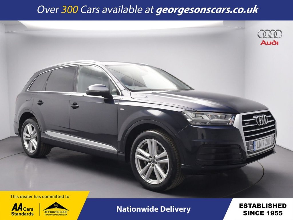 Liverpool2 Previous Owners, The Audi Q7 3.0 TDI V6 S line combines a powerful 3.0litre turbo diesel V6 engine with 272hp, delivering 062mph in 6.9 seconds and up to 39.8mpg in this permanent quattro allwheeldrive setup with a smooth 8speed Tiptronic automatic transmission. The S line trim enhances the sporty appeal with 20inch alloy wheels, aggressive styling, lowered suspension, and a premium interior for commanding large SUV performance. Enjoy the spacious 7seat configuration with flexible seating for family or group travel. Navigate effortlessly with integrated satellite navigation, Apple CarPlay, Bluetooth, and DAB radio, ensuring seamless connectivity on every journey. Parking is a breeze thanks to the parking sensors, providing confidence in tight spaces. Stay comfortable with 4zone climate control and heated front seats, offering personalised comfort yearround. Paddle shift gears provide precise control, while cruise control with speed limiter and hill assist enhance relaxation and capability on varied terrain. The luxurious fivedoor SUV design includes a 770litre boot (5seat mode, expandable to 2,065 litres) for exceptional practicality. Georgesons Cars, one of the leading used car dealerships near me, has been serving Liverpool and the wider Merseyside area since 1955. As a thirdgeneration familyrun business, we offer a wide variety of cars for sale, including over 300 quality used cars in Liverpool. Whether youre searching for cars for sale in Liverpool or reliable auto used cars, our inventory is pricechecked daily, ensuring competitive pricing. Rated 5stars on TrustPilot, Georgesons Cars proudly upholds the AA dealer promise and Chartered Trading Standards approval. Contact us today to explore our full range of cars for sale and let our team help you find your next car!.7 Seats, Airbags Front Side with Curtain, All Weather LED Headlights, Aluminium Roof Rails, Aluminium Window Trims, AMI Audi Music Interface, Anti Theft Locking Wheel Bolts, AntiTheft Alarm, Audi Connect 3 Month Trial, Audi Connect Infotainment Embedded SIM, Audi Connect Safety and Service ecall, Audi Drive Select, Audi Hill Hold Assist, Audi Parking System Plus, Audi PreSense City, Audi Smartphone Interface, Audi Sound System, AutoDimming RearView Mirror, Bluetooth Interface, Child Locks, Chrome Package, Cloth Headlining in Black, Comfort Front Centre Armrest, Cruise Control with Speed Limiter, DAB Digital Radio Reception, Deluxe FourZone Automatic Climate Control, Door Mirrors HeatedElectrically AdjustableFolding, Door Sill Trims with S Line Logo, Driver and Front Passenger Airbag with Front Passenger Airbag Deactivation, Driver Information System with Colour Display, Dynamic Rear Indicators, Dynamic Suspension, Electric Windows Front and Rear, Electrically Adjustable 4Way Lumbar Support, Electrically Adjustable Front Seats, Electromechanical Parking Brake, Electromechanical Power Steering, ESC Electronic Stabilisation Control inc ABS EBD ASR EDL, Exterior Mirror Housings in Body Colour, Front and Rear Floor Mats, Full BodyColour Paint Finish, Gloss Package, Headlight Washer System, Heat Insulating Glass Windscreen, Heated Front Seats, HighBeam Assist, Hill Descent Control, Interior Light Package, ISOFIX Child Seat Mounting, Keyless Go, LED Rear Lights, Light and Rain Sensor, MMI Navigation Plus including MMI Touch, MMI Radio Plus, Power Operated Tailgate, Power Steering Servotronic, Privacy Glass, Remote Central Locking, S Line Body Styling, Seat Belt Monitoring, Stainless Steel Loading Sill Protector, Steel Pedal Cluster, Steering Wheel 3Spoke Leather Multifunction Sports, Steering Wheel Height and Reach Adjustable, Two CupHolders in Centre Console, Tyre Pressure Loss Indicator, Upper Inlays in Brushed AluminiumSono and Lower Inlays in Chrome Paint FinishSlate Grey, Voice Control System
