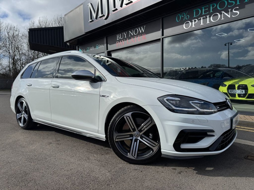 Bishop Auckland1 Previous Owner, VOLKSWAGEN GOLF 2.0 TSI R Estate 5dr Petrol DSG 4Motion Euro 6 (s/s) (310 ps) Finished in striking Pure White, this R Estate perfectly combines everyday practicality with exhilarating performance. Inside, enjoy heated race cloth seats, a Virtual Cockpit, Apple CarPlay, DAB radio, Sat Nav, ambient lighting, and a multifunctional steering wheel for a connected, premium driving experience. The exterior impresses with 18" Cadiz alloys, R styling pack, roof rails, tinted rear glass, LED lights, and power folding mirrors. Safety and convenience are topnotch with front + rear parking sensors and adaptive cruise control, making this Golf R Estate as functional as it is stunning throughout. .Race ClothArt Velour Titan Black, 18in Alloy Wheels Cadiz, Adaptive Cruise Control, Parking Sensors Front and Rear, Heated Front Seats, Race ClothArt Velour Titan Black, 12V Socket Luggage Compartment, 18in Alloy Wheels Cadiz, ABS AntiLock Braking System with HBA Hydraulic Brake Assist, Active Info Display, Adaptive Cruise Control, Airbags, Alarm with Interior Protection, Ambient Lighting Pack, AntiTramp Function, Automatic ComingLeaving Home Lighting Function, Automatic PostCollision Braking System, Bag Hooks in the Luggage Compartment x2, Black Rooflining, Body Coloured Bumpers, Body Coloured Door Handles, Brake Calipers Black, Brake Pad Wear Indicator, CarNet App Connect, Carbon Touch Decorative Inserts in Dash and Door Panels, Carpet Mats Front and Rear, Child Security Locks in the Rear Doors, Chrome Plated Air Vent Surrounds, Chrome Plated Electric Mirror Adjustment Switch Surround, Chrome Plated Electric Window Button Surrounds, ChromePlated Light Switch Surround, Climate Control, Composition Media System, Convenience Pack, Cover for Storage Compartment in Centre Console, Cup Holders Front x2, Discover Navigation TouchScreen NavigationRadio System with CarNet Guide and Inform, Driver Alert System, Driver Personalisation Profile, Drivers and Passengers Safety Optimised Head Restraints, Driving Mode Selection, Dusk Sensor Automatic Driving Lights, Dust and Pollen Filter, ESC Electronic Stability Control including EDL Electronic Differential Lock and ASR Traction Control, Electric Windows Front and Rear, Electronic Engine Immobiliser, Electronic Parking Brake with Auto Hold Function, Extended Sill Strips Flared, Extending Luggage Compartment Cover with Convenience Opening Stowable, Front Assist, Front Centre Armrest with Storage Compartment and Two Rear Air Vents, Front Footwell Illumination, Front Seat Back Storage Pockets, Front Sport Seats with Height and Lumbar Adjustment, Front Sports Seats with Embroidered R Logo, Galvanised Body, Glovebox Cooled, Grab Handles Front x2 Rear x2 with Coat Hooks, Headlight Washer System, Heated Front Seats, Heated Rear Windscreen, Heated Windscreen Washer Jets, HeightAdjustable Front ThreePoint Seat Belts with Tensioners, High Level 3rd Brake Light Incorporating LED Technology, ISOFIX Child Seat Preparation for 2 Rear Seats, Illuminated Door Sill Protectors, Instrument Lighting White Adjustable Panel Illumination, Interior Light Delay, LED Headlights with Dynamic C