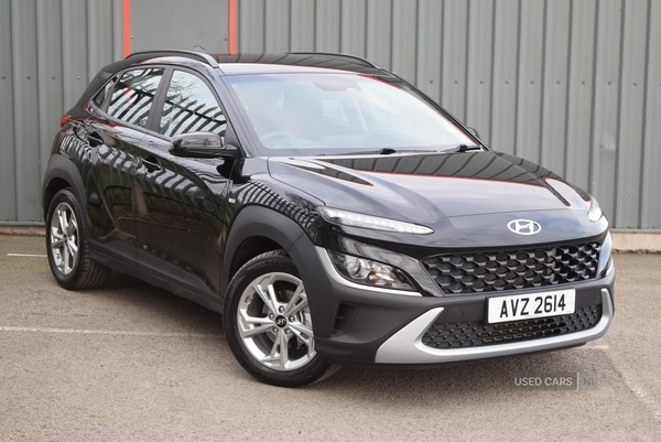 LisburnInsurance Group 10, 0 Previous Owners, The Hyundai KONA 1.0 TGDi 48V MHEV SE Connect offers a practical solution for a wide range of drivers, combining efficient petrol performance with an appealing set of features. With just 12,095 miles recorded, this vehicle provides an opportunity to enjoy recent motoring technology and comfort. The manual transmission delivers a direct and responsive drive, while the inclusion of features such as air conditioning, cruise control, and a leatherwrapped steering wheel ensures a comfortable and convenient driving experience for both driver and passengers.The exterior is finished in black, complemented by body colour door mirrors and handles, roof rails, and a rear roof spoiler with an integrated LED brake light. Halogen headlights, LED daytime running lights, and positioning lights contribute to visibility and a distinctive road presence. The car also benefits from tinted glass for additional privacy and a shade band on the windscreen, with the overall look enhanced by metal paint effect interior door handles and cloth upholstery.Inside, the KONA is equipped with a range of amenities designed for comfort and practicality. The flexible 60/40 split folding rear seat and numerous storage options, including a sunglasses holder, parcel shelf, and luggage hooks, add to its everyday usability. Adjustable head restraints, a driver's seat height adjustment, and a height/reach adjustable steering column support a comfortable seating position, while rear air vents ensure passenger comfort on longer journeys.Specification highlights include an 8'' touchscreen display with smart device integration, Bluetooth connectivity, and support for both Apple CarPlay and Android Auto. Safety is prioritised with features such as forward collision avoidance assist, lane follow assist, lane keep assist, and a rear parking system with camera and sensors. Additional benefits include automatic headlights, electrically adjustable and heated door mirrors, rain sensor wipers, alarm and immobiliser, remote central locking, and a tyre pressure monitoring system
