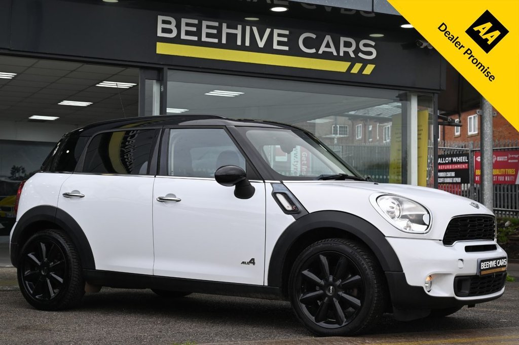 HorwichInsurance Group 20, DRIVE AWAY TODAY OR HOME DELIVERY TO YOUR DOORSTEP FINANCE & PART EXCHANGE ARRANGED ONLINE** 7 DAY MONEY BACK GUARANTEE** BIG SPEC Nice car & drive Mini countryman cooper sd automatic all4 in metallic white with good service history CHILLI PACK mini boost system cd dab radio bluetooth usb aux half leather seats with front armrest electric folding door mirrors rear parking aid sensors xenon lights f1 style paddleshifts sport button push button start stop alloys privacy BEEHIVE CARS IS A FAMILY RUN BUSINESS ALL OUR CARS ARE HAND PICKED, INDEPENDENTLY INSPECTED AND SOLD TO GUARANTEED RETAIL STANDARDS. **WE INCLUDE MOT + HPI REPORT + WARRANTY + FULLY VALETED + 12 MONTHS FREE AA BREAKDOWN COVER + 5 DAYS DRIVEAWAY INSURANCE**. TRAIN STATION OR BUS STATION PICK UP IF COMING BY PUBLIC TRANSPORT. NATIONWIDE DELIVERY AND FINANCE PACKAGES AVAILABLE WE RECOMMEND YOU BOOK YOUR VIEWING AND SECURE IT WITH A £100 DEPOSIT. **T & Cs Apply .17in Alloy Wheels 5Star Double Spoke Light, 18in Alloy Wheels Turbo Fan Light in Anthracite Matt, 3Spoke Sport Leather Steering Wheel with Gearshift Paddles, 3rd Brake Light, Air Conditioning Automatic, Air Conditioning Manual, Air Scoop Integrated between Bumper and Radiator GrilleFrame in Body Colour, Airbags Driver, Airbags Front Passenger, Airbags Front Passenger with Deactivation Switch, Airbags Front Side, Airbags Head, Alarm Thatcham CAT1, AntiLock Braking System ABS, ASC+T Automatic Stability Control and Traction, AuxIn Connection, Basic Bluetooth Function with USB Audio, Bike Rack Preparation at Rear, Brake Assist, Brake Pad Wear Indicator, Car Jack, CBC Cornering Brake Control, Central Bass HiFi System, Central Locking Activated At 10mph, Central Locking Remote, Centre Rail, Child Seat ISOFIX Attachment, CHILI Pack, ClothLeather Parallel Lines Light Tobacco, Colour Line Carbon Black, Cooled Glovebox, Cupholders Two in Front, DAB Tuner, Dashboard Trim Dark Anthracite, Door Handles Chrome Plated, Door Handles Interior Chrome Plated, Door Mirrors Electrically Adjustable and Heated, DTC Dynamic Traction Control, Dynamic Stability Control DSC, EBD Electronic BrakeForce Distribution, Electric Windows One Touch Up and Down Front and Rear, Electrically Folding Exterior Mirrors, Electronic Power Steering, Embellisher at Bottom Edge of All Windows Chrome Plated, Exhaust Tailpipe Visible Double Round Left and Right with Chrome Finishers, Footrest and Pedals in Stainless Steel, Frame ChromePlated RadiatorGrille in Honeycomb Black, Front Fog Lights, Grab Handles, Halogen Lights for Low Beam and High Beam Headlights, Headlight BeamThrow Control Electrical with Manual Adjustment, Headlights BiXenon, Headlights Chrome Bezels, Headlights Follow Me Home, Headlining Beige, Heated Front Windscreen Washer Jets, Hill Assist, Interior Light Pack, Interior lights Integrated into Centre Front Headliner including Two Reading Lights, Interior Surfaces Dark Anthracite Decorative Trim Finishers on Centre Console and Door Ring, Interior World Carbon Black, Lashing Eyes in Luggage Compartment, Light White, Microfilter, MINI Mobility System, MINIMALISM Fuel Saving Technology, Mirror Caps in Body Colour, Multifunction Controls for Steering Wheel, PDC Park Distance Control Rear, Radio BOOST CD, Rain Sensor and Automatic Headlight Activation, Roof and Mirror Caps Black, Roof in Body Colour,