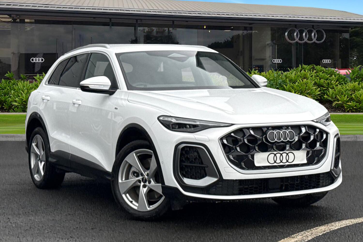 Carlisle Audi is pleased to introduce this Audi Q5 SUV S line, finished in the modern Arkona White. This Q5 sits on a set of 20" Audi Sport Alloy Wheel adding to the striking exterior. The rear windows are fitted with Privacy Glass, adding to the sleek exterior. This Q5 comes fitted with a 2 litre diesel engine, allowing you to push an impressive 204PS. This Q5 comes with a Sound and Vision Pack, which includes Increased charging capacity for USB ports, Ambient lighting package plus with dynamic interaction light and MMI experience pro. This Pack also includes a Headup display which projects important information such as your speed and the speed limit onto your windscreen at eye level, allowing you to keep your eyes on the road. This Audi is also fitted with the upgraded Bang & Olufsen premium sound system with 3D sound and integrated headrest speakers, allowing you to listen to all your favorite songs in stunning quality. The price of the vehicle shown includes a deposit contribution of £1000 when purchased on finance by 31/03/2026. Solutions Personal Contract Plan. 7.9% APR Representative. Audi Financial Services. Terms and Conditions apply. Inside, youll find the front seats fitted with 4way lumbar support alongside a heat function that allows you to stay cozy no matter the weather outside. In front of the driver is the flat top and bottom steering wheel that allows you to control your music, cruise control and Audi Virtual Cockpit. Here you can see information a...
