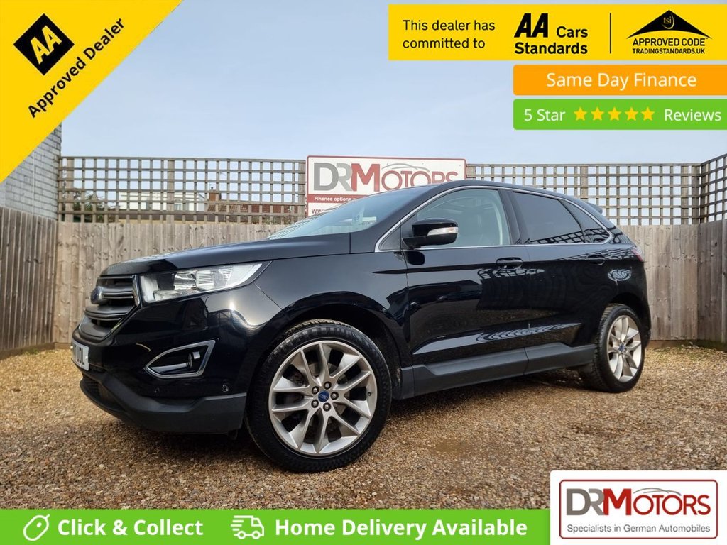 Leicester1 Previous Owner, Discover this stunning Ford Edge 2.0 TDCi Titanium SUV, a powerful and refined 5door diesel manual with intelligent AWD capability, now available with our March Special Offer 18 Months Nationwide Gold Warranty included in the price. With just one former keeper from new, this ULEZcompliant example is presented in very clean condition both inside and out and truly needs to be seen to be appreciated first to see will buy. This wellmaintained vehicle comes with MOT until February 2027 and includes two keys. It boasts an impressive specification featuring satellite navigation, rear parking camera, front and rear parking sensors, a panoramic glass roof, heated leather seats with heated rear seats and cooling front seats, plus electric memory seats for added comfort. The electric tailgate and generous boot space make it as practical as it is stylish, while privacy glass and striking 20inch alloy wheels complete the look. Inside, youll find Bluetooth handsfree connectivity, DAB radio, USB/AUX connection and cruise control, delivering comfort and convenience on every journey. The 2.0 TDCi engine offers excellent fuel efficiency and low running costs, making this SUV exceptional value for money. Finished in a lovely colour combination, it is a superb allround family vehicle with premium features throughout. We offer flexible finance options to suit your needs and have over 150 DR Approved Used Cars on site. We are proud winners of the CarGurus Top Rated Dealer Award for 2020, 2021 and 2022. Debit cards are accepted and you can pay today and drive away the same day. Please note there is a £149 administration fee in addition to the vehicle price. Every vehicle is sold with a nationwide Gold Warranty option to upgrade to a 1year Gold Warranty for £399 or a 2year Gold Warranty for £599. All our cars are fully Experian HPI clear and part exchange is welcome. We are happy to take a deposit to secure this vehicle. Viewings are by appointment only, so please call our Sales Manager Jason on 07858 818 903 at any time, day or night, to arrange a viewing. For finance options and full details, please visit www.drmotors.co.uk. Every effort has been made to ensure accuracy; however, please confirm any details with a member of our sales team. At DR Motors, we are proud to be both a Trading Standards Approved Garage and an AA Approved Dealer, reflecting our commitment to quality and customer satisfaction. Each car also includes 12 months free AA Breakdow. Sat Nav, Rear Camera, Front & Rear Parking Sensors, Bluetooth Telephone , Cruise Control, Metallic paint , Panorama Roof, 20in Alloy Wheels, 10in Colour TFT Instrument Cluster Display, 220 V Power Outlet in Centre Console, Acoustic Side Glass, Active City Stop with Pedestrian Detection, Active Noise Control, Airbags Curtain, Airbags Driver and Front Passenger, Airbags Front Side, Airbags Passenger Deactivation, Ambient Lighting, AntiLock Braking System ABS with Electronic Stability Control ESC, Auto Dimming Rear View Mirror, Bright Finish on Upper Door Line, Centre Console with Fixed Armrest Stowage and Cup Holders, Chrome Roof Rails, Cruise Control, DEATC DualZone Electronic Automatic Temperature Control, Electric Parking Brake, Floor Mats Front and Rear Velour, Fold Flat Rear Seats Second Row Seats with Easy Fold Seat Function and Recline, Ford DAB Audio with Navigation System with 9 Speakers, Ford Easy Fuel Capless Refuelling with Misfuel Inhibitor, Front Fog Lights, Front Lower Grille Chrome Surround, Front Seat Driver 4Way Manual Adjust, Front and Rear Parking Sensors, Handsfree Power Tailgate with Keyless Entry System, Heated Front Sports Seats, ISOFIX Child Seat Attachments, Keyless Start Button, LED Second Row Reading Lights, Lane Keeping Aid with Auto Headlights and Rain Sensing Front Wipers, Leather Trimmed Steering Wheel and Gearshift Knob, MyKey, Power Assisted Steering, Power Folding Door Mirrors with Puddle Lights, Power Front and Rear Windows with Key Fob Operated Global Opening and Closing, Quickclear Heated Front Windscreen with Heated Washer Jets, Rear Lights LED, Rear Privacy Glass Dark Glass to Rear Windows, Rear Spoiler Body Colour, Rear View Camera, SYNC 3 with Bluetooth and Voice Control 8in Colour Touchscreen and Emergency Assistance, Scuff Plates Illuminated, Spare Wheel Steel, TSR Traffic Sign Recognition, Thatcham Category 1 Alarm, Tyre Pressure Monitoring System
