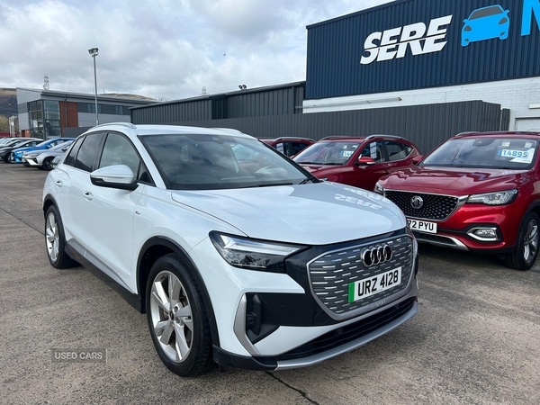 Belfast0 Previous Owners, The Audi Q4 220kW 50 Quattro 82kWh S Line offers a refined driving experience that suits a wide range of requirements. With just 27,358 miles recorded, this vehicle provides a harmonious blend of practicality and advanced engineering, making daily travel both comfortable and assured. Features such as 3 zone automatic air conditioning and heated front seats enhance comfort in all seasons, while the electrically adjustable, heated, and folding door mirrors ensure convenience and safety in varied conditions.Performance is a notable strength, with the electric drivetrain producing 299 bhp for responsive acceleration. The vehicle reaches 060 mph in 6.2 seconds and has a top speed of 111 mph, offering assured progress on both urban roads and motorways. Progressive steering and Audi drive select allow for adaptable handling, making each journey composed and enjoyable.A sophisticated white paint finish is complemented by S line exterior styling, including S line badges on the front wings and privacy glass to the side and rear windows. Design touches such as contrast bumpers in manhattan grey, aluminium roof rails, and a single frame grille with a structured closed surface within an octagonal shape underscore the vehicle's contemporary appearance. The projection light in the exterior mirrors, featuring the etron logo, adds a distinctive detail.Specification highlights include the Audi Virtual Cockpit with a 10.25inch display, MMI Navigation Plus with an 11.6inch touchscreen, and Bluetooth connectivity. Driver aids such as camerabased traffic sign recognition, lane departure warning, power operated tailgate, and presense front with pedestrian and cyclist detection contribute to safety and convenience. Interior appointments feature a gloss black centre console, stainless steel pedals, and ISOFIX child seat mountings, while security is supported by keyless go, an antitheft alarm, and antitheft wheel bolts