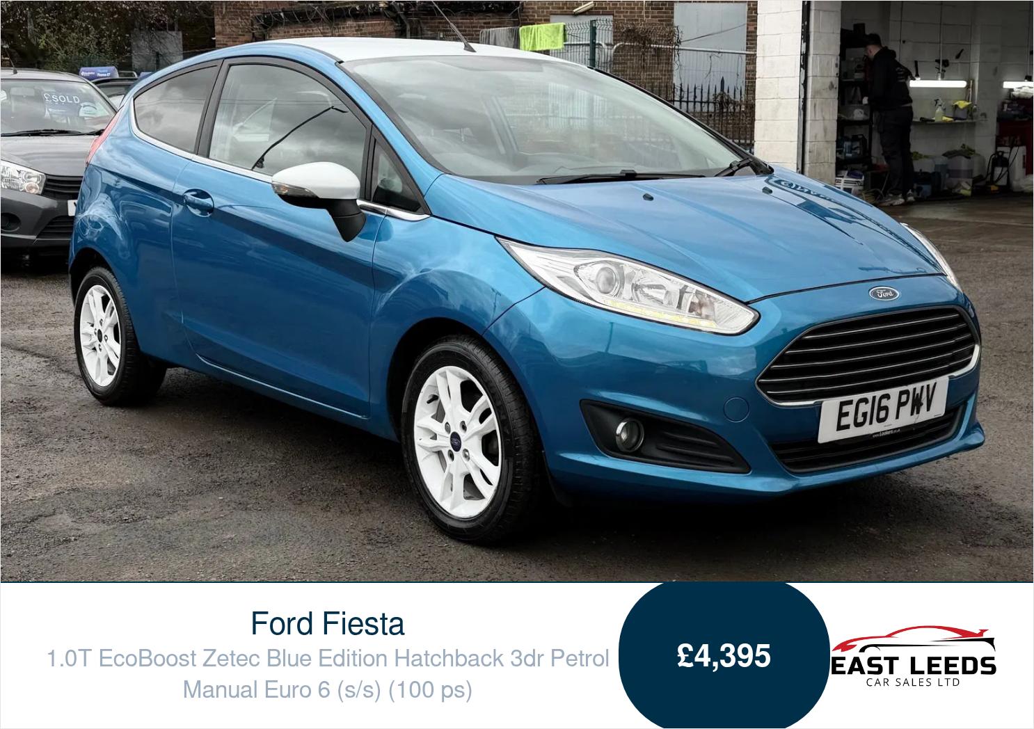 LeedsInsurance Group 12, 1 Previous Owner, Full service history, Only 2 Owners From New. Full Service History Just Been Serviced. 2 Keys. MOT Until 17 02 2027, Finance Available, 6 Months Warranty, This Car Comes Fit with Sat Nav, Bluetooth Hands Free, CD Player, 15 Alloy Wheels, White Roof, Rear Parking Sensors, Electric Windows & Mirrors. Discover the thrill of driving with the stunning Ford Fiesta 1.0T EcoBoost Zetec Blue Edition At East Leeds Car Sales, this eye catching Candy Blue hatchback is not just a head turner it s packed with features that elevate your driving experience. With only 2 previous owners, a full service history, and a recent service under its belt, this beauty is ready for the road Enjoy peace of mind with an MOT valid until 17 02 2027 and a 6 month warranty. Finance options available to suit your needs, making this the perfect time to drive home your dream car Equipped with a Ford Navigation System , DAB radio , and Ford SYNC for seamless connectivity, you ll stay entertained and effortlessly find your way. The rear parking sensors make parking a breeze, while the 15 alloy wheels and chic white roof add a stylish touch. Features like Bluetooth Hands Free, electric windows, and mirrors make every journey enjoyable. Don t wait Come down to East Leeds Car Sales and take this fantastic Ford Fiesta for a spin today It s not just a car it s your next adventure waiting to happen