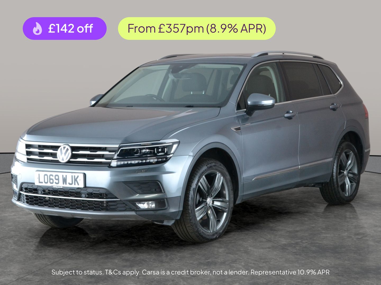 Step into comfort and versatility with this stylish grey Volkswagen Tiguan Allspace. Experience the benefit of upgraded Discover Navigation Pro and Park Assist, making every drive easy and enjoyable. Enjoy panoramic views through the sweeping panoramic sunroof, while adaptive cruise control and heated seats keep you relaxed on any journey. With LED headlights, keyless entry, fully digital Active Info Display, and front and rear parking sensors, every drive is a pleasure. Bluetooth connectivity and sunblinds add the finishing touches. MOT to 26/02/2027. Visit our website for service history, online valuation, full vehicle specification plus multiple images. Any feature/option specified here is from 3rd party data. We cannot guarantee the accuracy of any specification supplied by a 3rd party. We recommend that you physically check the specification of the vehicle on site prior to purchase. This information does not form part of the buying contract. Terms & Conditions apply. We have over 2,000 cars available from our 10 national branches, check our website to see all our stock. Our Trustpilot rating is 4.4/5 with over 9,000 reviews.