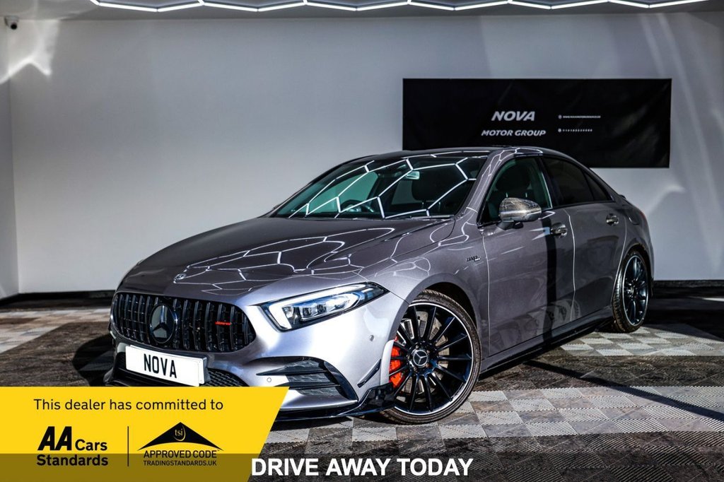Sunderland2 Previous Owners, This 2020 Mercedes Benz A Class A35 AMG Premium Plus boasts exceptionally low mileage for its age, having covered just 32835 miles. This Euro 6 compliant, four wheel drive model is powered by a potent 2.0 litre petrol engine and comes with a clear vehicle history check. Notable features include the striking AMG Night Package, advanced MULTIBEAM LED Headlights with Adaptive Highbeam Assist Plus, and luxurious Heated Front Seats. For added comfort and convenience, it also offers Electrically Adjustable Front Memory Seats with Lumbar Support and an impressive Burmester Surround Sound System. Experience exhilarating performance with this A35 AMG, capable of accelerating from 0 to 60mph in a remarkable 4.8 seconds. This impressive acceleration figure highlights how this vehicle offers a more dynamic driving experience compared to many others in its class. The combination of its AMG trim, advanced technology, and performance credentials makes this Mercedes Benz A Class a truly compelling proposition for any discerning driver. Nova Motor Group is a prestige car dealership run by car enthusiasts with a passion for motoring and a commitment to excellent customer service! All of our vehicles come with 3 months warranty (where applicable) supplied by AutoProtect, with options to extend this up to 3 years for added peace of mind. We also offer optional products to protect your cars interior and exterior with Williams F1 Racing Team Ceramic Coating, providing a lifetime guarantee on treated surfaces. We welcome part exchanges regardless of age or mileage, A short inspection is all we need. Our aim is always to provide the fairest and most accurate price for your vehicle. Test drives are welcomed with open arms, just remember to bring your drivers licence for insurance purposes. As a broker, we offer flexible finance options through our panel of trusted lenders (rates subject to your credit profile). Finance checks can be performed inhouse or online, from the comfort of your home..Heated Front Seats, MBUX Multimedia System, Burmester Surround Sound System, Cruise Control with Limiter, Exhaust System Featuring AutomaticallyC, Mountain Grey, Leather Black, 19in Alloy Wheels AMG MultiSpoke Painted in Matt Black with a HighSheen Finish, ABS AntiLock Braking System with BAS Brake Assist, AMG Aerodynamics Package, AMG Bodystyling Front and Rear Apron, AMG Night Package, AMG Radiator Grille with Twin Blade Lamella and AMG Lettering, AMG Suspension, ATTENTION Assist, Active Bonnet Pedestrian Safety Measure which Detects an Impact and Raises Bonnet by 65mm, Active Brake ASSIST, Active Lane Keeping Assist, Adaptive Brake Assist with Hold Function and Hill Start Assist, Adaptive Brake Lights, Air Conditioning THERMOTRONIC Luxury Automatic Climate Control TwoZone with Display, Air Vents Black with Silver Chrome Elements, Airbag Kneebag for Driver, Airbags Dual Stage Driver and Front Passenger, Airbags Windowbags for Driver and Front Passenger, Alarm System with Immobiliser and Interior Protection Thatcham Category 1, Automatic Child Seat Recognition Sensor, Beltline Strips High Gloss Black, Bodystyling Side Skirts BodyColoured, Brake Calipers with AMG Lettering, BrakePad Wear Warning Indicator, Brushed Stainless Steel Sports Pedals with Rubber Studs, Bumpers Body Coloured, Burmester Surround Sound System, Centre Armrest Front with Stowage, Childproof Locks Manually Operated for Rear Doors and Electrically Operated for Rear Power Windows, CrashResponsive Emergency Lighting, Cruise Control with Limiter, DAB Digital Radio Tuner, Digital Instrument Cluster with Three AMG Display Styles and AMG Menu, Direct Steer SpeedSensitive Power Steering, Door Handles Body Coloured, Door Mirrors Electrically Adjustable and Heated with Integrated LED Indicators, Dual Bluetooth Interfaces, Dynamic Select with a Choice of Driving Modes ComfortSportSport PlusSlippery and Individual, ESP Electronic Stability Programme with ASR Acceleration Skid Control, ESP Curve Dynamic Assist, Electric Parking Brake, Electric Windows 4, Exhaust System AMG Sports Exhaust System with Two Round Tailpipes Attached to the Rear Apron, Exhaust System Featuring AutomaticallyControlled Exhaust Flap, First Aid Kit and Warning Triangle, Floor Mats with Stitched Edging and AMG Lettering, Front Apron with Flics as Air Deflector Elements on the Outer Air Intakes, Front Splitter and Trim Elements on the Louvres in the Outer Air