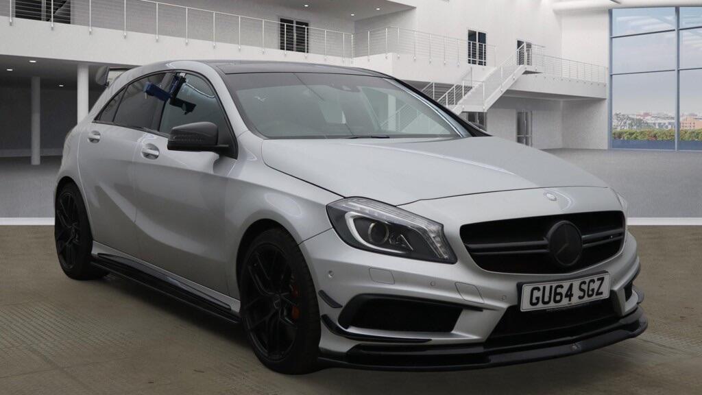 Birmingham2 Previous Owners, Mercedes Benz A45 AMG 2.0 4MATIC DCT Hatchback Automatic in Silver. Only 54,000 warranted miles on the clock. Car comes with a 12 Month Warranty! Mot till 17th December 2026. Only 2 previous owners from new. Service History Available: 6 Services 3 Main Dealer. Car drives well with no mechanical faults. Full V5 Available. Good spec including: Navigation System, Bluetooth Preparation, DAB Digital Radio, Navigation HDD, Parking Camera(s), Parking Sensor(s), Reverse Assist Camera, Cruise Control, Climate Control, Alcantara Trim, Part Leather Trim, Steering Wheel AMG Performance, Steering Wheel Finish Nappa Leather/Alcantara, 18'' Alloy Wheels, Privacy Glass, Panoramic RoofLeather Steering Wheel, CD/DAB Radio/Bluetooth/AUX, AC/Climate Control, Electric Windows, Electric Mirrors, Alloy Wheels, Cruise Control, Central Locking and many more. Nationwide Delivery Available. P/X Welcome. HPI Clear. 2 Keys. Any questions don't hesitate to contact us on 07470 017582. Whatsapp available as well