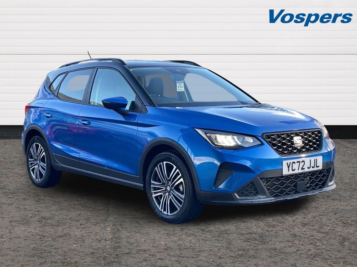 Insurance Group 12, 0 Previous Owners, .This 2022 SEAT Arona 1.0 TSI 110 SE Edition 5dr DSG is a stylish and efficient compact SUV with just 9,197 miles. Powered by a 1.0L turbocharged engine and smooth DSG automatic transmission, it delivers responsive performance and excellent fuel economy. The SE Edition trim features a modern interior with touchscreen infotainment, Apple CarPlay and Android Auto, LED lighting, and advanced safety features. With low mileage, practical space, and sleek design, the Arona SE Edition is perfect for city commuting and everyday driving..'Lights On' Reminder warning buzzer, Analogue cockpit with physical dials, Cruise control and speed limiter, Digital clock, Ecall, Electric speed sensitive power steering, Full Link Smartphone Integration with Mirror Link, Apple Car Play, Google Android Auto with USB Type C cable for Apple and Android compatibility, Lane keeping system, Low fuel warning light, Outside temperature display, Rear parking sensor, RPM counter, Seat connect with safety, service and remote, Trip computer, Wireless phone charger, Bluetooth interface for hands free and audio streaming, DAB digital radio and AM/FM radio, Media system with 8.25'' colour touchscreen with USB port (type c), Steering wheel mounted audio controls, Anti theft roof antenna, Automatic activation of hazard warning lights, Black roof rails and window surrounds, Body coloured bumpers, Body coloured door handle inserts, Body coloured door mirrors, Dark tinted rear windows, Dimming rear view mirror, ECO LED automatic headlights and LED daytime running lights, Electric front/rear windows, Electrically adjustable and heated door mirrors, Hidden exhaust pipe, Licence plate lights, Protective side mouldings, Rear fog lights, Rear side wing doors, Rear spoiler, Rear window wash/wipe, Third brake light, Visible VIN plate, Windshield wiper with intermittent control and potentiometer, 2 cupholders, 3 seat bench in 2nd row, 60/40 split folding rear seat, Cloth upholstery, Double boot floor, Driver sunvisor with covered mirror + card holder, Dual zone climate control, Dust/pollen filter, Front courtesy light with front reading lights, Gear shift indicator, Grey interior roof, Height adjustable front seats, Height/reach adjustable steering column, Illuminated boot, Instrument lighting with brightness control, ISOFIX points in outer rear seats with top tether anchorage points, Leather steering wheel/gear knob/handbrake, Passenger sunvisor with vanity mirror, Single front passenger seat, Two front