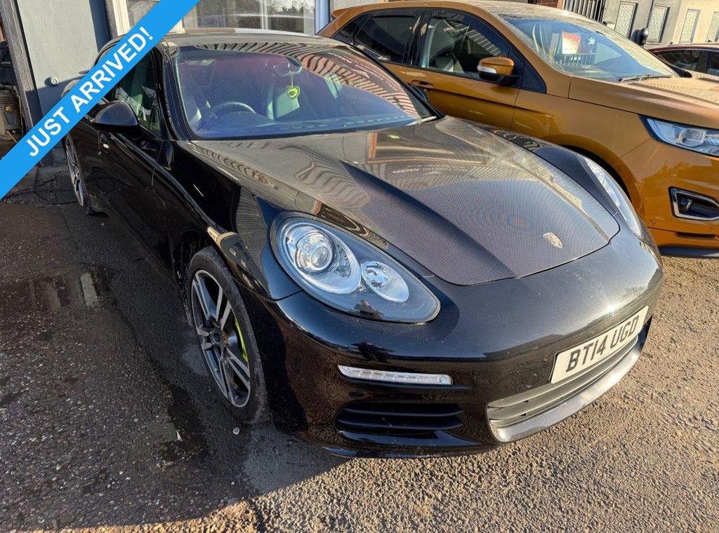 Insurance Group 50, NEW IN STOCK. BLACK. HPI CLEAR. DATE OF REGISTRATION: 30/05/2014. 2 Keys. Serviced at: 7k, 12k, 27k, 34k, 41k, 68k, 69k. Specification includes: Satellite Navigation, Panormaic Roof, Bose Sound, Leather Seats, Heated Seats, Front and Rear Parking Sensors, Bluetooth, Cruise Control. 12 month AA Breakdown Assistance included. Finance available. Part Exchange Welcome. Visit our website: www.rdmdirect.co.uk to view our latest diversified stock listings .18in Alloy Wheels Panamera S, 2 TwinTube Tailpipes LeftRight Side Outboard Stainless Steel Brushed, 2x Front 12v Sockets, 2x Rear 12v Sockets, 7in TFT Touchscreen, ABD Automatic Brake Differential, ABS Antilock Brake System, Active Hood System, Adaptive Air Suspension, Adaptive Brake Lights, Adaptive Rear Spoiler 2Way, Air Outlets in Fenders Behind Front Wheels Black Grained, Airbag Curtain, Airbag Driver, Airbag Passenger, Alarm System, Armrest Front Centre Console with Integrated Storage Compartment, AutoDeployed Rear Spoiler, Automatically Dimming Exterior and Interior Mirrors, BiXenon Headlights, Bonnet Tailgate Doors and Front Wings in Aluminium, Brake Assistant, Brake Calipers in Acid Green, Brake Pad Wear Monitoring on Each Brake Caliper, CDR Audio System, Central Locking with Remote Control, Coasting Function, Cruise Control, Cupholders Front Centre Armrest x1, Cupholders Rear x2, Daytime Running Lights LED, Diffuser in Lower Rear Apron Smooth Black Grained, Digital Radio DAB DAB+DMB, Door Mirrors Electrically Adjustable and Heated with Power Fold, Door Sill Guards Brushed Aluminium, Driving Light Assistant, Dynamic Range Adjustment, EMobility Power Cable for Domestic Plug 2.5m, EDTC Engine Drag Torque Control, Electric Parking Brake, Electric Windows Front Lift with One Touch Operation and Electrically Operated Rear Side Windows, Engine Immobiliser, External Amplifier, Floor Mats, Folding Centre Armrest Rear, Front Fog Lights LED, Glove Compartment Cooled Via AC System, Halogen Auxiliary MainBeam, Headlight Cleaning System, Headlights Automatic Dynamic Headlight Levelling, ISOFIX Anchors for Child Seat Attachment on Rear Seats, Instrument Cluster with Highresolution 4.8in TFT Colour Display, Integrated Antenna System for AudioNavigationTelephone and TV, Integrated Cluster of Five Round Instruments, Integrated Headrests Front and Rear, Interior Indicator Gear Recommendation, Interior Lighting Packaging, Interior Trim Black HighGloss, Knee Airbags for Driver and Front Passenger, Luggage Compartment with Velour Lining, PASM Porsche Active Suspension Management, PCM Porsche Communication Management Multimedia System, PORSCHE Logotype and Model Designation on Rear Lid in Chrome Look, PSM Porsche Stability Management, Park Assist Rear, ParticlePollen Filter with Activated Charcoal Canister, Porsche Car Connect EMobility Services, Porsche Charging Dock, Porsche Side I