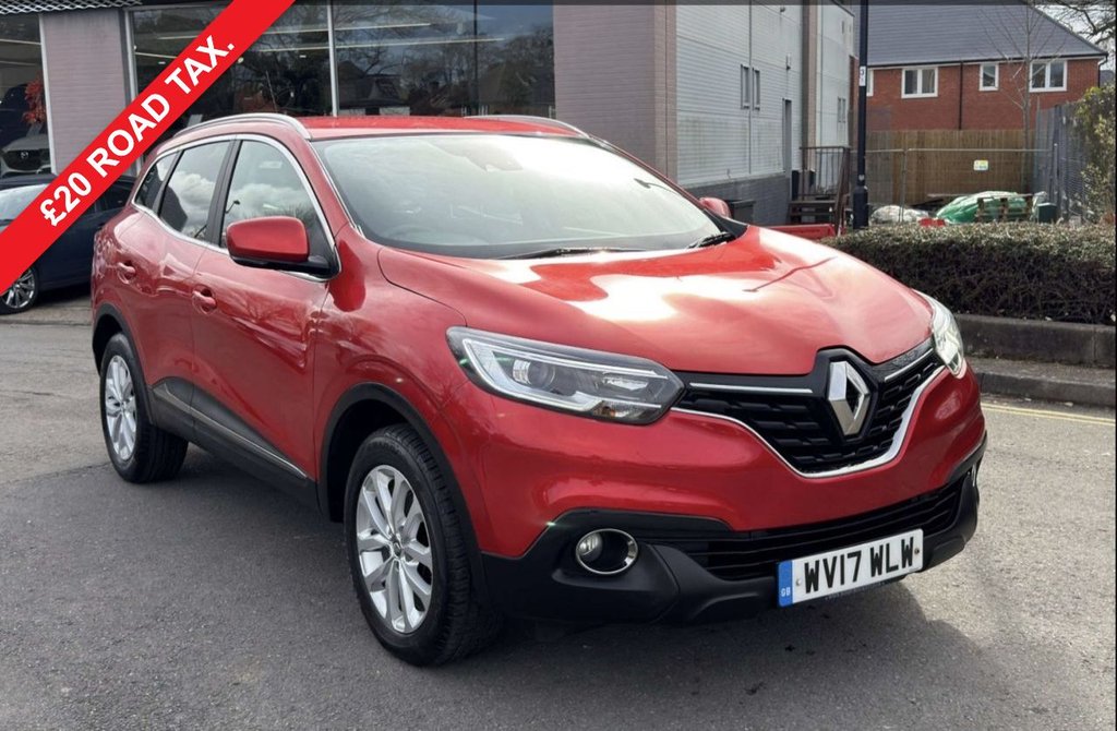 Insurance Group 14, 1 Previous Owner, THIS CAR WILL BE IN STOCK VERY SOON, PLEASE CALL 01980 591923 FOR FURTHER DETAILS....A GREAT VALUE FOR MONEY KADJAR FINISHED IN FLAME RED AND COMPLETE WITH SATELLITE NAVIGATION, BLUETOOTH AND CRUISE CONTROL. THIS CAR WAS REGISTERED ON THE LAST DAY BEFORE ROAD TAX WENT UP FOR THIS TAX BAND, SO IS ONLY £20 ROAD TAX PER YEAR. All our cars come serviced, with a 12 months MOT certificate, a nationally valid 6 months AA warranty (extensions are available) and a free 12 months AA breakdown cover (or existing member upgrade). We check all our cars with Motorcheck to ensure that there is no outstanding finance, and that mileages are verified. Please ask to see the report. .17in Alloy Wheels Athena, 3 Point Inertia Reel Seatbelts, ABS with EBD Electronic Brake Distribution and Emergency Brake Assist, Accessory Power Point, Adjustable Dashboard Illumination, Air Recirculation, Airbags Drivers Two Stage Auto Adaptive, Airbags Front Lateral, Airbags Front Passenger Deactivation, Airbags Front Passengers Two Stage Adaptive, Airbags Front and Rear Curtain, Android Auto, AntiDrill Door Locks and Ignition Barrel, Apple CarPlay, Arkamys 3D Sound 4x35W DAB Radio with Bluetooth and USB Connection, Armrest Front Centre, Assisted Parking Brake, Automatic Headlights and Windscreen Wipers, Body Sided Moulding with Chrome Insert, Chrome Detailing, Chrome Window Surrounds, Climate Control Automatic Dual Zone, Climate Pack, Courtesy Lights Rear, Cruise Control with Speed Limiter, DaylightNightlight Rearview Mirror, Daytime Running Lights LED, Display Digital Speedometer 7in TFT Screen, Door Handles Body Coloured Front, Door Mirrors Body Coloured Shell, DoorBoot Open Warning Light, Driver and Passenger Seat Belt Undone Warning Audible Alert, Dust Protection Kit, ESP Electronic Stability Programme with ASR AntiSkid Regulation and UCL Understeer Logic Control, Eco Mode, Electric Windows Front, Electric Windows Rear, Electronic Parking Brake, Exterior Temperature Sensor, Extra Tinted Windows Rear and Tailgate, Fingertip Audio System Remote Control, Fleet Management, Fog Lights with Cornering Function, Front and Rear Towing Rings, Full Flat Floor, Glovebox Light, Gravel Protection Kit, HSA Hill Start Assist, Headlights Halogen, Headrests Front Fully Adjustable, Headrests Rear Height Adjustable x3, Heated Rear Windscreen, Heating Ducts to Feet of Rear Passengers, Height Adjustable Front Seat Belts, ISOFIX Child Seat Fixing Points Outer Rear Seats, Indicators with Side Repetitions, Insurance Approved Category 1 Alarm System and Immobiliser, Integrated Fuel Filler Cap, Interior Courtesy Light Controlled By All 4 Doors, Flame Red, Keycard Hands Free, Low Fuel Level Warning Light, Luggage Compartment Illumination, Multi Position Trunk Floor, Oil Level Gauge, Pollen Filter, Power Assisted Steering, Protective Rear Brake Disc, RAID Renault Anti Intruder Device, Rain Protection Kit, Reading Lights Driver and Front Passenger, Rear Seat Belt Undone Warning Audible Alert, RevCounter, Roof Rails, Satellite Navigation RLink v2 System, Seats 3Seat Rear Bench, Seats 6040 Split Foldin