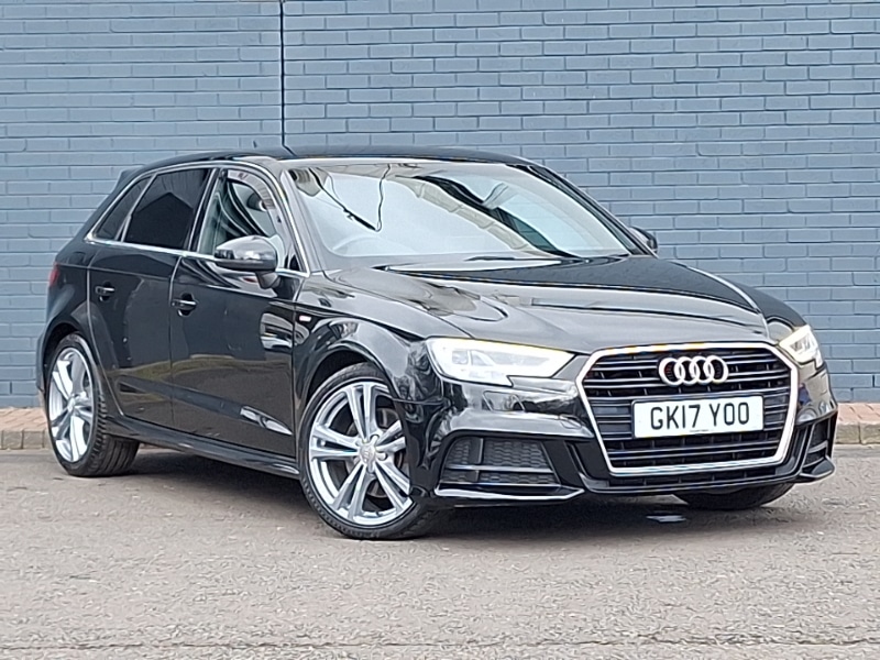 KirkcaldyAudi drive select, Body colour roof spoiler, Apple CarPlay, Audi connect, S Line body styling, Android Auto, LED daytime running lights, Steering wheel audio controls, Audi smartphone interface, DAB Digital radio, 2 USB ports, Chrome exhaust tailpipes, Sport specific side air inlet grille and diffuser insert, Light and rain sensor pack A3 Hatchback/Sportback, Tyre pressure monitor, Space saver spare wheel