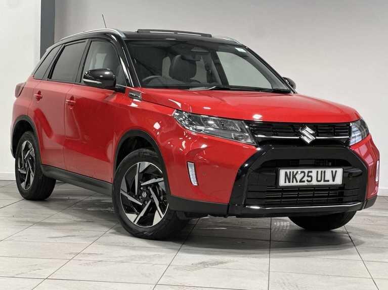 0 Previous Owners, Franchise Approved, This 2025 Suzuki Vitara Ultra presents an exceptional opportunity with an incredibly low mileage of just 2552 miles, making it practically new for its registration year. This Ultra trim model is equipped with a 1.4 litre petrol hybrid engine, meeting Euro 6 emission standards. It also boasts a range of advanced features designed for comfort and safety, including Adaptive Cruise Control, integrated Bluetooth for seamless audio and calls, and a double sliding panoramic sunroof that floods the cabin with light. For added convenience and security, it features a rear parking camera and a blind spot monitor.The Suzuki Vitara Ultra stands out with its impressive fuel economy, achieving a highlight of 53 miles per gallon, and also benefits from low CO2 emissions. These figures indicate that this Vitara is more economical and environmentally friendly compared to many other vehicles in its class. Combined with its very low mileage and comprehensive suite of modern features, this 2025 Suzuki Vitara Ultra offers a compelling package for any discerning driver.