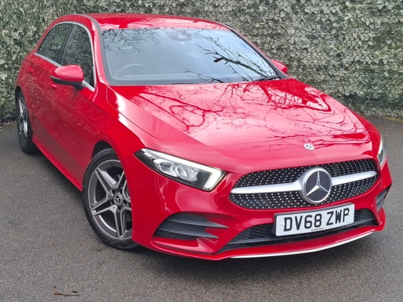 GlasgowInsurance Group 23, Bluetooth interface for hands free telephone, Reversing camera, HDD Navigation system, Cruise control, LED daytime running lights, LED Headlights, Speed limiter, Steering wheel audio controls, 7" colour screen in instrument panel, 7" tablet style colour display, Active lane keep assist, Attention assist, Cruise control + speed limiter, DYNAMIC SELECT with a choice of driving modes (ECO, Comfort, Sport, Sport+ and Individual), Direct steering, External temperature gauge, Low fluid warning light, Speed sensitive power steering, Stop/start system, 18" AMG 5 twin spoke light alloy wheels in titanium grey with highsheen finish, Trip computer, Voice control system, Warning lamp for direction indicators, Lowered comfort suspension, 2 USB ports in centre console, DAB Digital radio, MBUX Multimedia system including digital instrument cluster and phone mirroring, Rain sensor windscreen wipers, Isofix rear child seat preparation, Seat comfort pack A Class, Hill start assist, Alarm system/interior protection/immobiliser