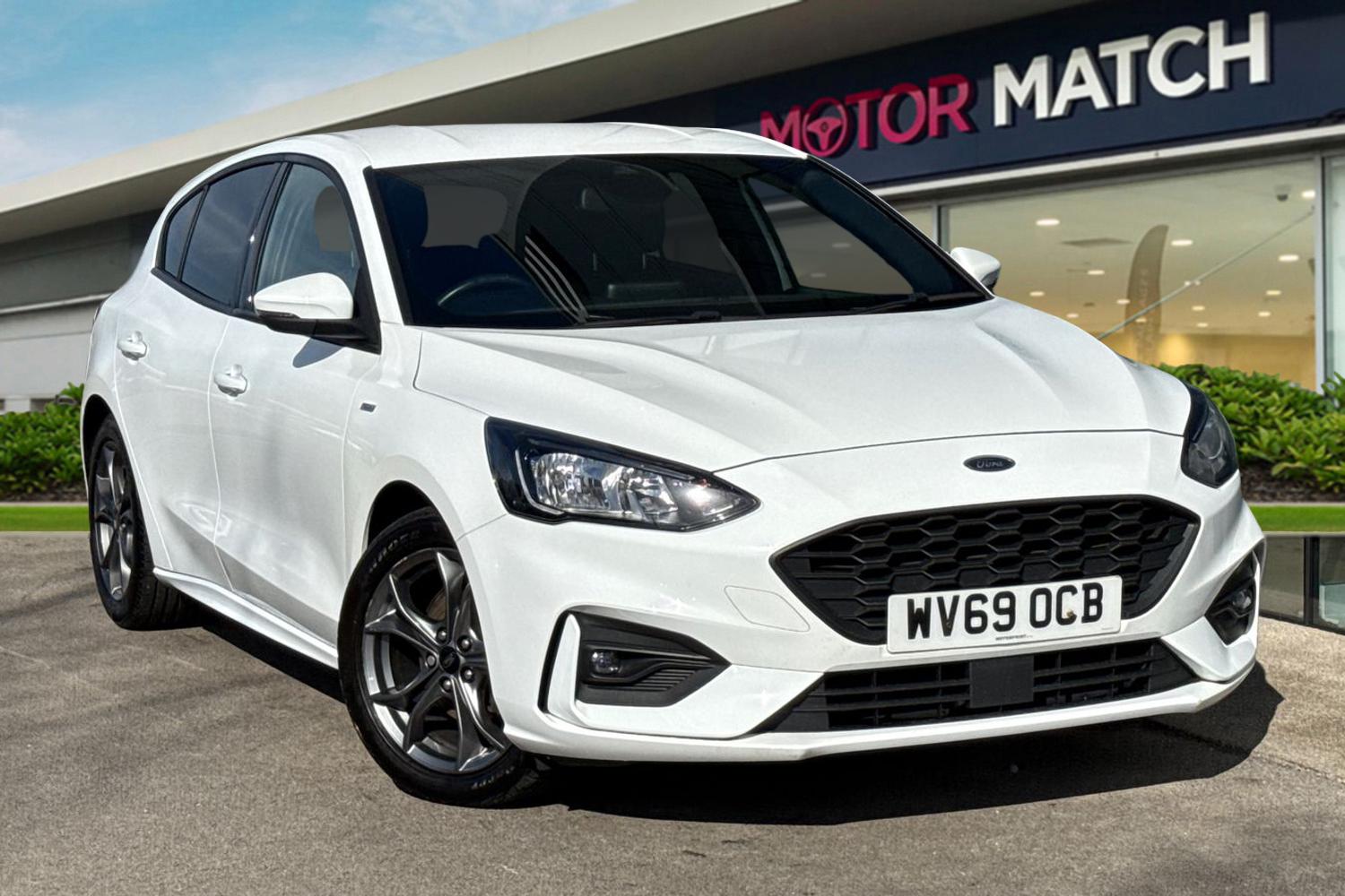 Insurance Group 12, 1 Previous Owner, This 2019 Ford Focus ST Line presents a remarkable opportunity with its exceptionally low mileage of just 39,296 miles for its age. This particular model is powered by an efficient 1.0 litre petrol engine, meeting the Euro 6 emission standards. Inside, youll find the convenience of manual air conditioning and the advanced Ford SYNC system, complete with an 8 inch TFT touchscreen that seamlessly integrates with both Android Auto and Apple CarPlay. The headlights are designed for ease of use, featuring an automatic onoff function. The Ford Focus ST Line offers a compelling blend of performance and practicality. Its acceleration from 0 to 62 miles per hour in 10.0 seconds provides responsive driving, while its low CO2 emissions make it an environmentally conscious choice. Furthermore, the generous boot space ensures you have ample room for luggage or shopping, setting it apart from many other vehicles in its class. By choosing this vehicle, which is ULEZ and CAZ compliant, you and the environment will benefit from reduced emissions, cleaner air in urban areas, and lower running costs. As part of the Motor Match range, this vehicle also comes with a 1,000mile or 30day warranty. To find out more or reserve this vehicle today, simply give our friendly sales team a call!