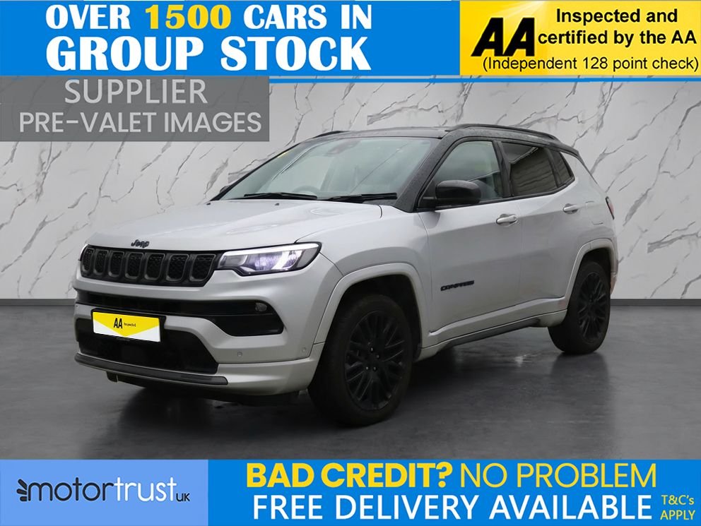 PrestonInsurance Group 31, 2 Previous Owners, This 2023 Jeep Compass GSE T4 S is presented with a clear vehicle history check and will come with a 12 month MOT for your peace of mind. This Four Wheel Drive, Euro 6 compliant, 1.3L Petrol Plugin Hybrid model offers an efficient and capable driving experience. Inside, you will find Ventilated Leather Seats with memory function, perfect for staying comfortable in any weather, and Rear Air Conditioning and Heater Vents to ensure all passengers enjoy the journey. Connectivity is seamless thanks to Bluetooth Streaming Audio, and the Passive Entry with Keyless Go system adds convenience to your daily use. The Jeep Compass S trim level is equipped with advanced LED Projector Headlamps, providing excellent visibility. These features, combined with its plugin hybrid powertrain and Four Wheel Drive capability, set this 2023 Jeep Compass apart from other vehicles in its class. It represents a well equipped and modern option for those seeking a versatile and technologically advanced SUV. Part Exchange Welcome. All Majors Cards Accepted. We Have Finance Available. A Wide Range of Warranties. We Also Offer Low Cost, Nationwide Delivery Available From £1.50 a Mile. **Every endeavour is made to ensure specifications and descriptions are correct. Due to model changes specification may vary. Phone for details. MPG figures shown are government official figures.**.Black, Glacier, Leather Black with Diesel Grey Stitching, 12V Auxiliary Power Outlet Second Row, 160MPH Primary Speedometer, 19in Alloy Wheels Painted Gloss Black, 4XE Badge ETorque Badge, Active Lane Management, Active Speed Limiting Device, Adaptive Cruise Control with Stop and Go, Air Vents Front and Rear, Airbags Drivers, Airbags Front Side, Airbags Front and Rear Side Curtain, Airbags Passenger, Alarm Premium, All Speed Traction Control, AllWeather Floor Mats with Jeep Logo, Anti Lock 4 Wheels Disc Brake ABS, Aspherical Driver Exterior Mirror, Auto Dimming Rear View Mirror, Automatic Electronic Hold Brake, Auxiliary 12v Power Outlet In Cargo Area, Battery Run Down Protection, Battery Skid Plate, Belly Pan Underbody Protection, Black Side Roof Rails, Black Window Surrounds, Blind Spot Detection, Bluetooth Streaming Audio, Body Colour Door Cladding, Body Colour Exterior Sill Mouldings, Body Coloured Door Handles, BodyColour Steel Roof, Capless Fuel Filler, Cargo Compartment Carpet, Cargo Compartment Cover, Cargo Compartment Lamp, Cargo Compartment Organiser, Cargo Load Floor, Cargo Tie Down Loops, Centre Console with Sliding Armrest, Centre Rear 3Point Seat Belt, Child Seat Anchor System, Coastdown and Runin Optimization, Coat Hooks, Compass Badge, DAB Digital Audio Broadcasting, Dash Insulation, Deep Tint Privacy Glass, Door Mirrors Gloss Black, Door Mirrors Power Folding, Driver Assist Handles, Drowsy Driver Detection System, Dual Note Electric Horns, Dual Tyre Pressure, Dual Zone Temperature Control with PreConditioning Capability and Heater, ERM Electronic Roll Mitigation, ESC Electronic Stability Control, EVPHEV Mode 2 Charging Cable, Electric Power Steering, Exterior Door Mirrors with Courtesy Lamps, Fascias Body Colour, Forward Collision Warning Plus Mitigation, Front Fascia Belly Pan Skid Plate, Front HeightAdjust Seatbelts, Front License Plate Bracket, Front Map Pocket LED Light, Front Parking Sensors, Full Length Floor Console, Gear Knob Leather Wrapped, Global Telematics Box Module TBM, Gloss Black Exterior Badging, Gloss Black Grille with Neutral Grey Rings, Glovebox Light, Glovebox with Damper Door, Head Restraints Rear x3, Headlamp Off Time Delay, Headlamps Automatic, Headlights Levelling System, Headlights Smartbeam, Heated Front Seats, Heated Rear Window, Heated Steering Wheel, Hill Descent Control, Hill Start Assist, ISA Intelligent Speed Assist, Illuminated Entry, Infotainment