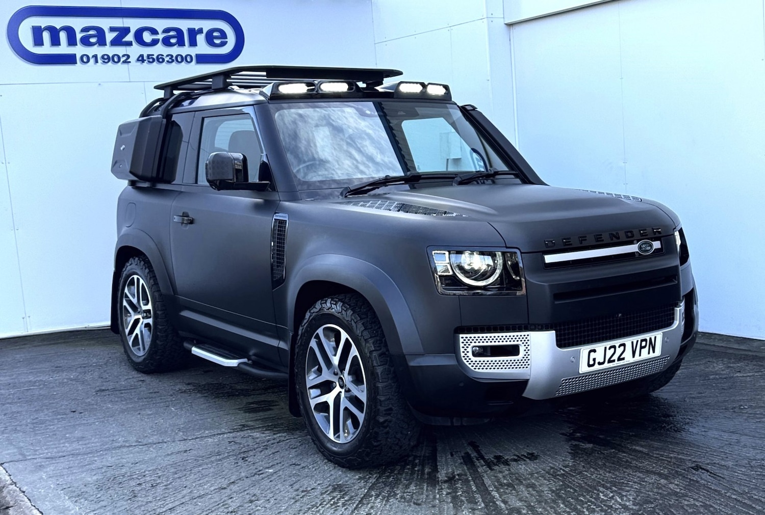 Wolverhampton1 Previous Owner, Mazcare are excited to offer a 2022 LAND ROVER DEFENDER 90, a highly soughtafter model that is sure to appeal to discerning drivers who enjoy toplevel quality and aspire to the best. This vehicle is finished in black and features a MATT BLACK WRAP, adding a touch of sophistication to its rugged design. The DEFENDER 90 is powered by a Petrol 2996cc engine, providing a smooth and responsive driving experience. The interior of this vehicle is trimmed in premium LEATHER, offering a comfortable and refined driving environment. The DEFENDER 90 also features a convenient SUNROOF, allowing plenty of natural light to enter the cabin. In addition, this model comes equipped with CARPLAY, enabling seamless integration with your mobile device. This particular vehicle has been wellmaintained, with a full service history (FSH) and 2 keys provided. The DEFENDER 90 also features a number of desirable accessories, including a LADDER and ROOF RACK, perfect for those who enjoy outdoor activities or require additional STORAGE. We welcome part exchange and offer finance options to suit your needs. To arrange a viewing, we recommend booking an appointment to ensure that the vehicle is available at a time that suits you. Please do not hesitate to contact us for further information or to discuss your requirements.